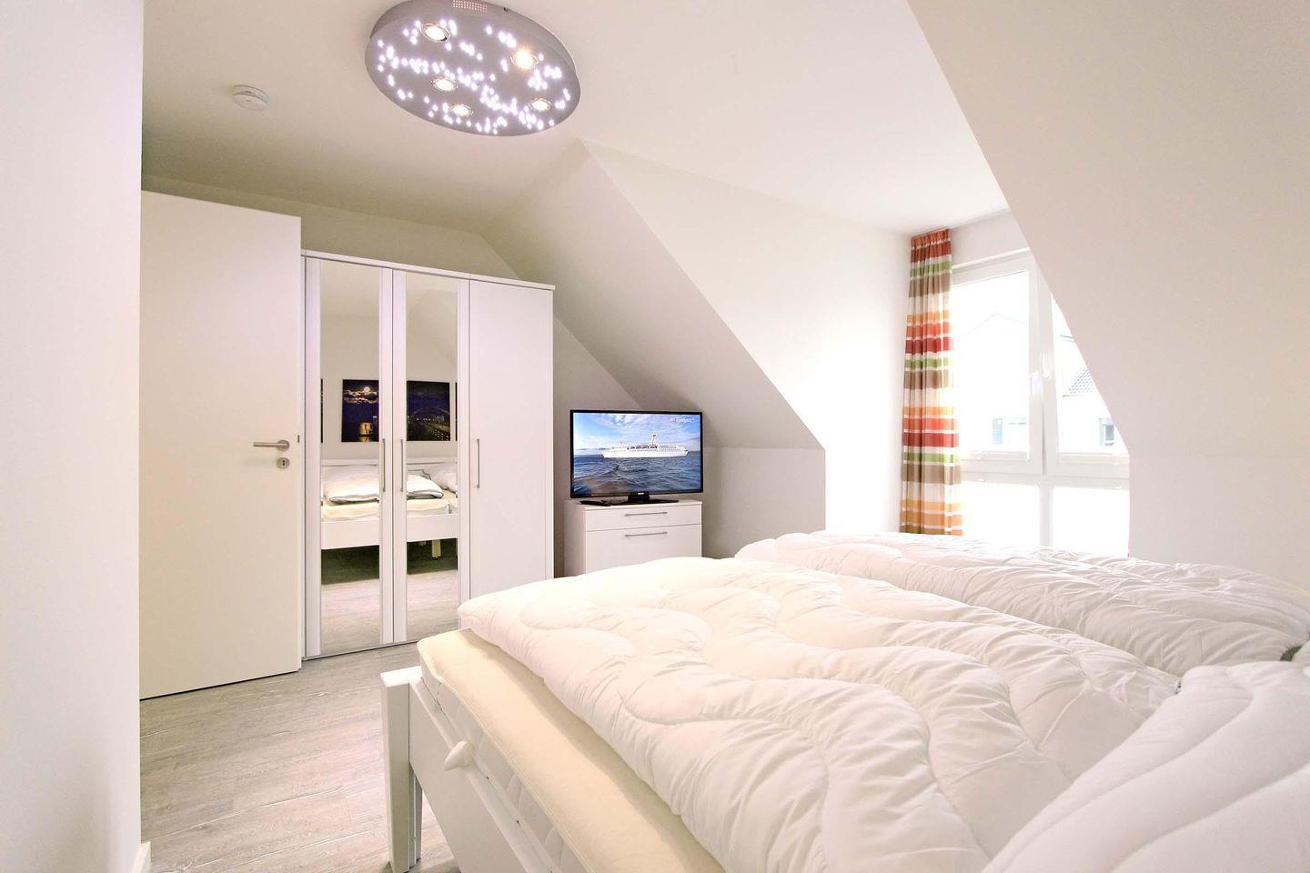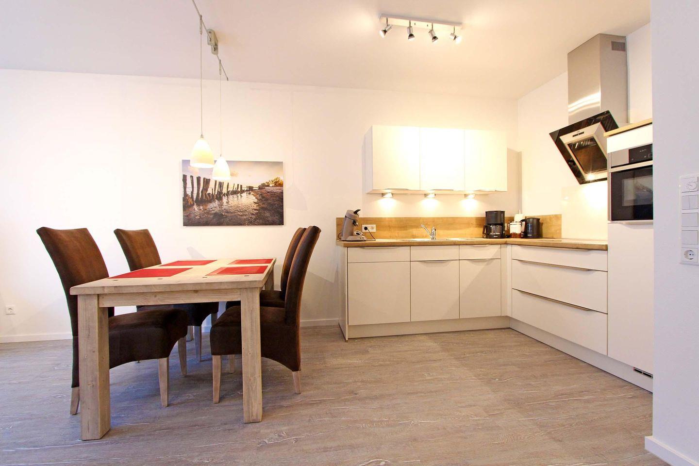 Dieses großzügige und stilvolle Reihenmittelhaus erstreckt sich mit ca. 75 qm auf zwei Ebenen. Ein sehr schicker, maritim, moderner Wohnbereich mit einer sehr hochwertigen Einrichtung lädt zum entspannen und wohlfühlen ein. Mit Sofaecke, Essbereich und offener Küchenzeile ist hier alles bestens vereint. Die Küche ist mit einem Multifunktionsofen (integrierte Mikrowelle und Grillfunktion) und einer Geschirrspülmaschine ausgestattet. Ansonsten ist im Erdgeschoss noch ein Gäste-WC und ein Hauswirtschaftsraum mit Waschmaschine und Trockner. Im Obergeschoss befinden sich dann 2 separate Schlafzimmer und ein Badezimmer. Das erste Schlafzimmer ist mit einem Doppelbett (2 Matratzen á 0,90x2,00m), einem geräumigen Kleiderschrank und einem Fernseher eingerichtet, wobei das zweite Schlafzimmer dann mit zwei Einzelbetten (0,90x2,00m) eingerichtet ist. Generell ist alles mit sehr viel liebe zum Detail eingerichtet und dekoriert. Die dazugehörige Terrasse hat eine schöne und sonnige Süd-West-Lage und lädt ebenfalls zum verweilen und entspannen ein. Das Haus "Merlin" liegt nur 8 Gehminuten vom Strand entfernt und auch dem Urlaub mit dem Haustier steht generell nichts im Wege, denn nach Rücksprache und gegen Aufpreis sind Haustiere gestattet. Sollte das Reisegepäck so gering wie möglich ausfallen, dann ist ein Wäschepaket für den Aufenthalt in Kellenhusen gegen Gebühr einfach buchbar.