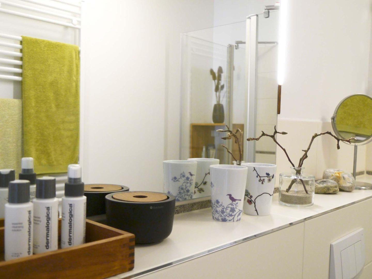 Die gesamte Wohnung empfängt schon beim Eintreten mit dem schönen maritimen Farbkonzept und dem stylischen Einrichtungsstil.