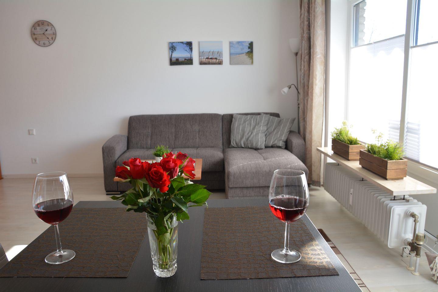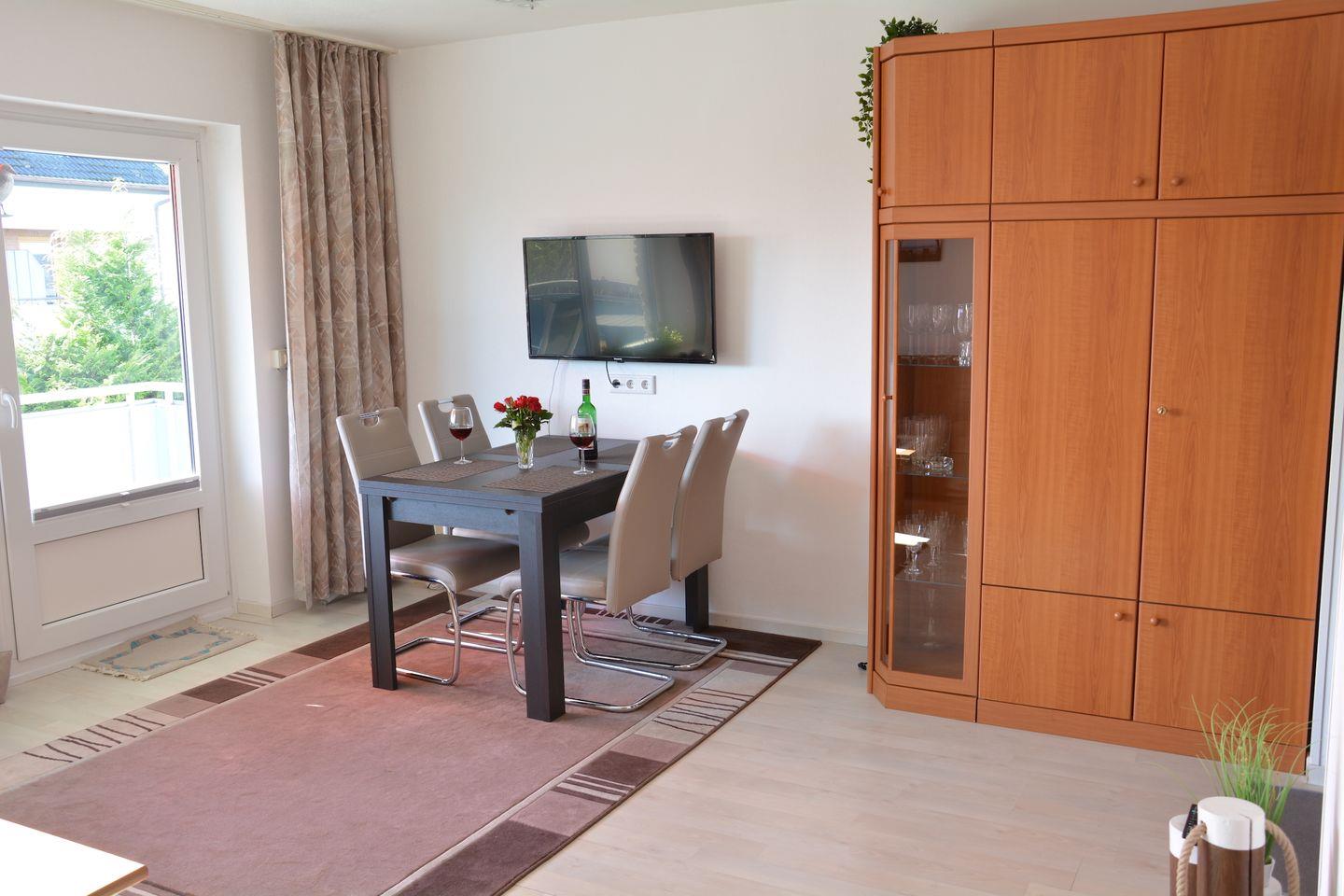 Direkt hinterm Deich befindet sich die die liebevoll eingerichtete ca. 35 qm große Nichtraucherwohnung in der 1. Etage des Hauses. Der Wohnbereich ist das Zentrum der Wohnung, hier ist eine Schlafcouch und ein Schrankklappbett (2 Matratzen á 0,80x2,00m) sowie eine gemütliche Essecke. Abgehend ist auch eine kleine Küche. Ansonsten gibt es noch das Badezimmer mit Dusche. Perfekt zum entspannen ist der dazugehörige Balkon mit sonniger Süd-West-Lage. Auch der wunderschöne Sandstrand ist nur eine Minute entfernt und kann fußläufig schnell und einfach erreicht werden. In der Wohnung ist kostenlos W-Lan nutzbar. Für Ihre Fahrräder steht Ihnen ein abschließbarer Fahrradabstellraum zur Verfügung. Sollte das Reisegepäck so gering wie möglich ausfallen, dann ist ein Wäschepaket für den Aufenthalt in Kellenhusen gegen Gebühr einfach buchbar.