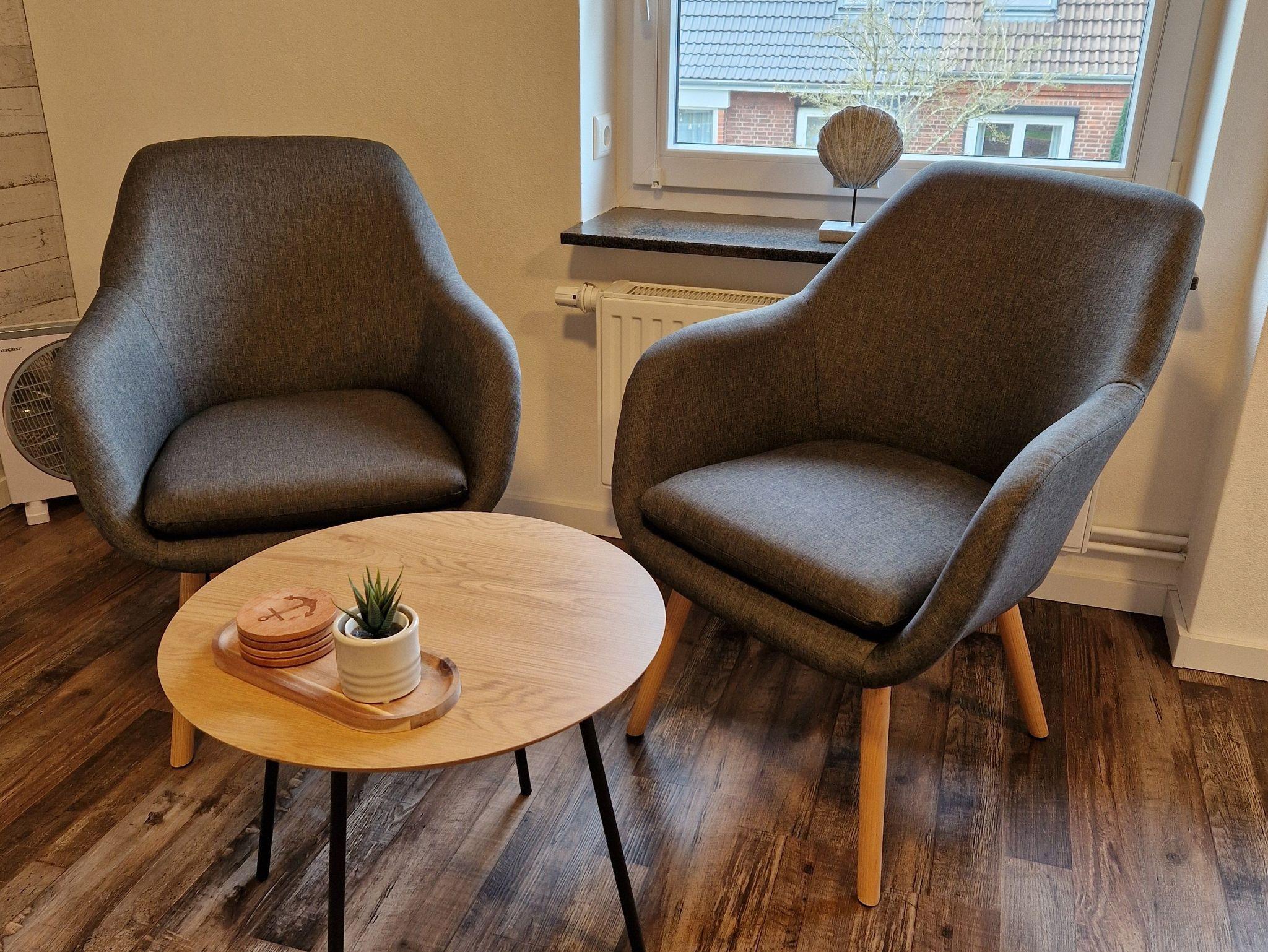 Durch den Hauseingang gelangen Sie in den großen Flur. Von hier aus führt die Treppe ins Obergeschoss in die kleine Küche, ausgestattet mit Kühlschrank, Kaffeemaschine, Wasserkocher und Induktionsplatte. Voin der Küche gelangt man in das Hauptzimmer, eine Kombination aus Wohn- und Schlafraum. Ein Doppelbett, Sitzgelegenheit und Flachbild-TV laden zum verweilen ein. Vom Schlafzimmer geht es direkt ins Badezimmer mit Dusche. Die Wochnung ist ausgelegt für 2 Personen. Es ist aber genügend Platz für ein Baby- oder Kleinkindreisebett vorhanden. Auch kleine Hunde bis 8 kg sind willkommen.