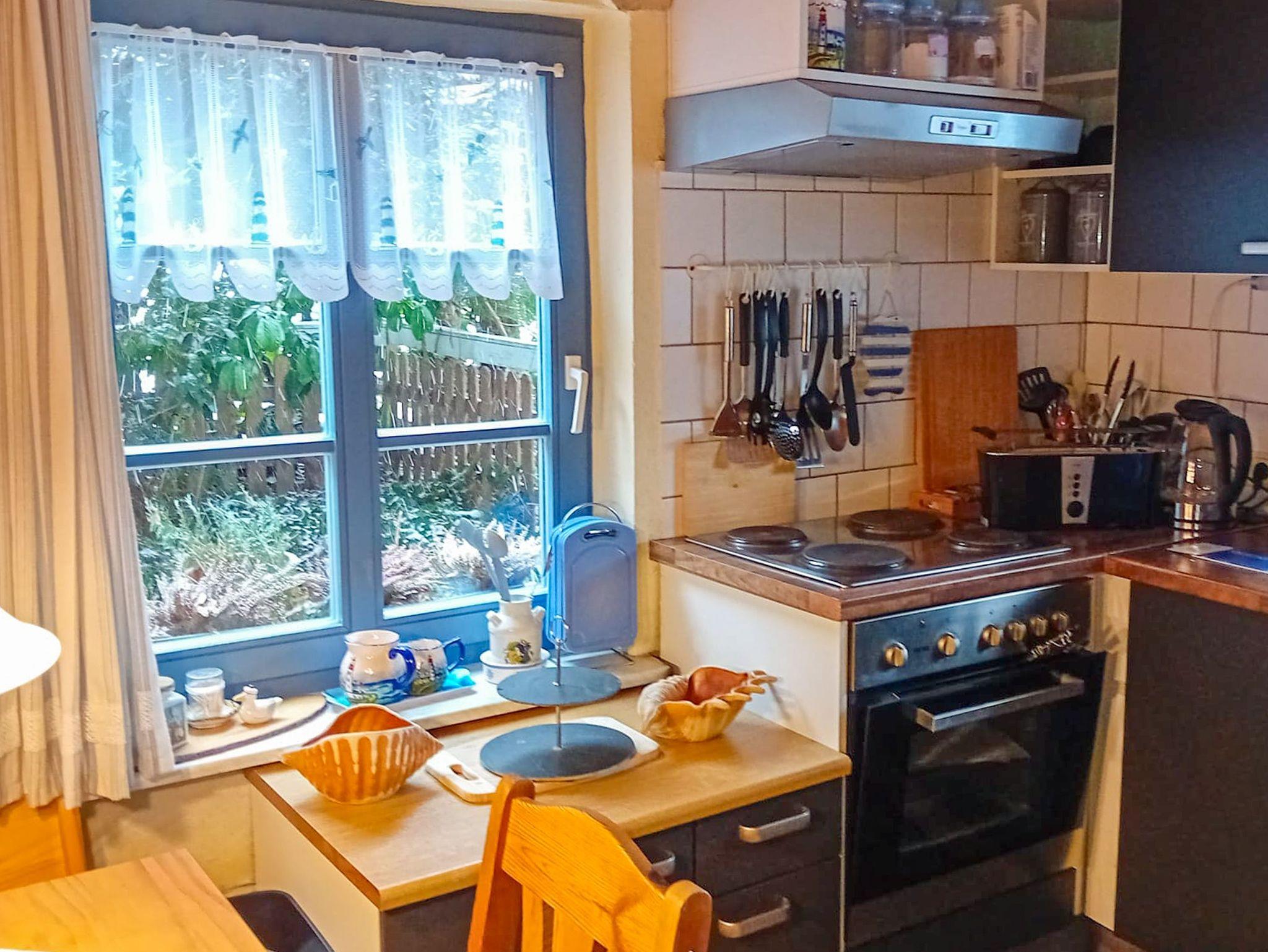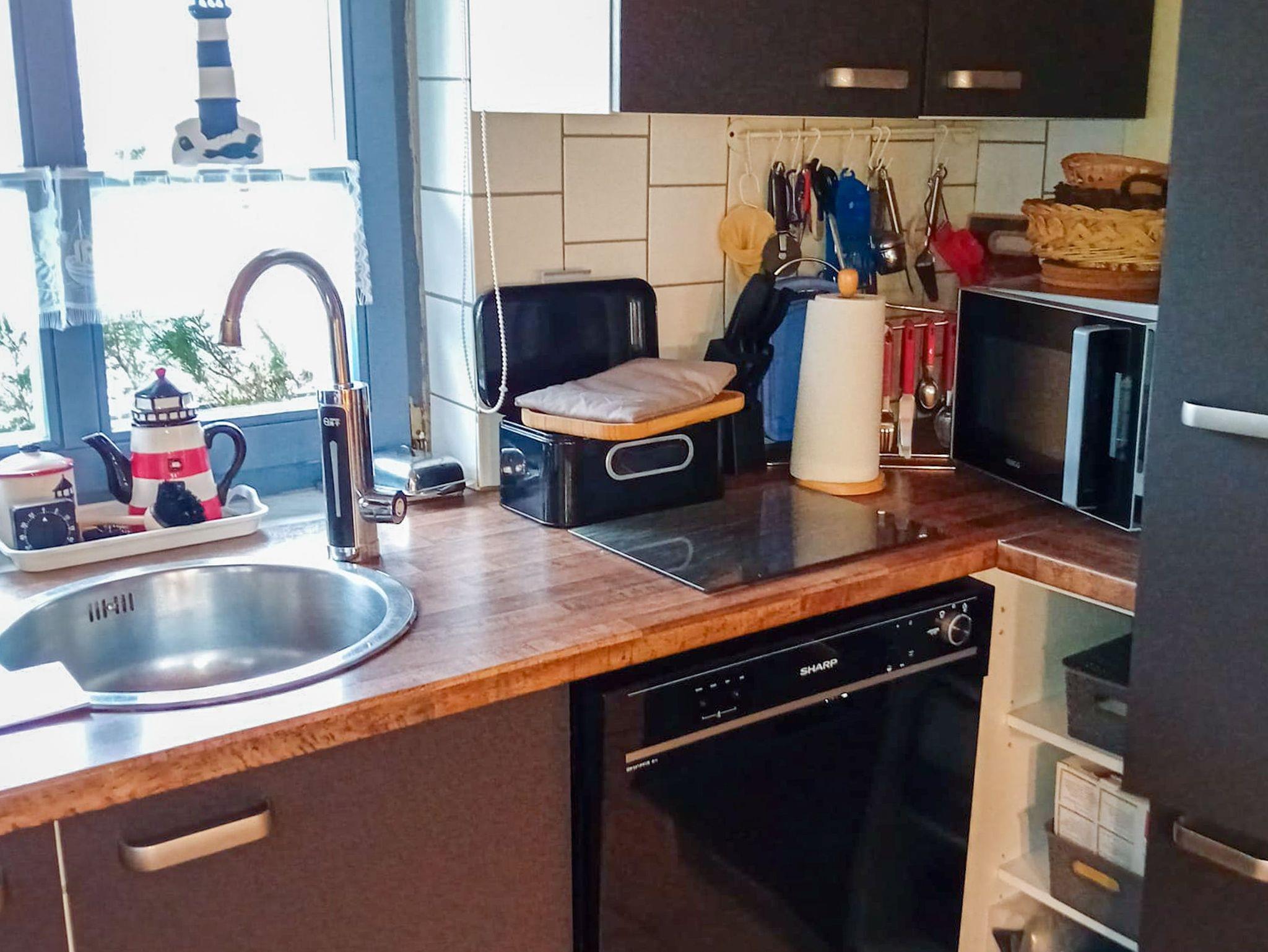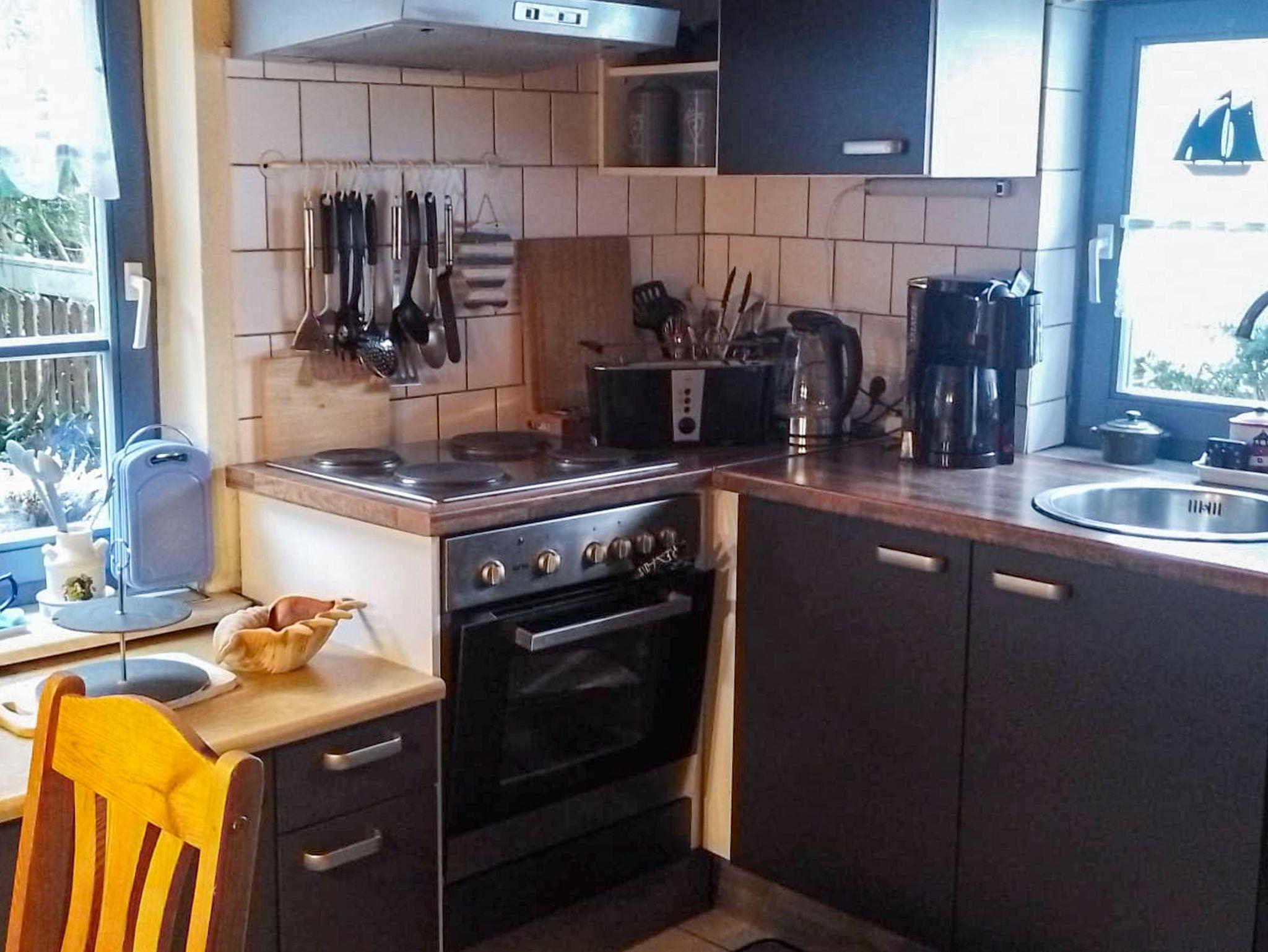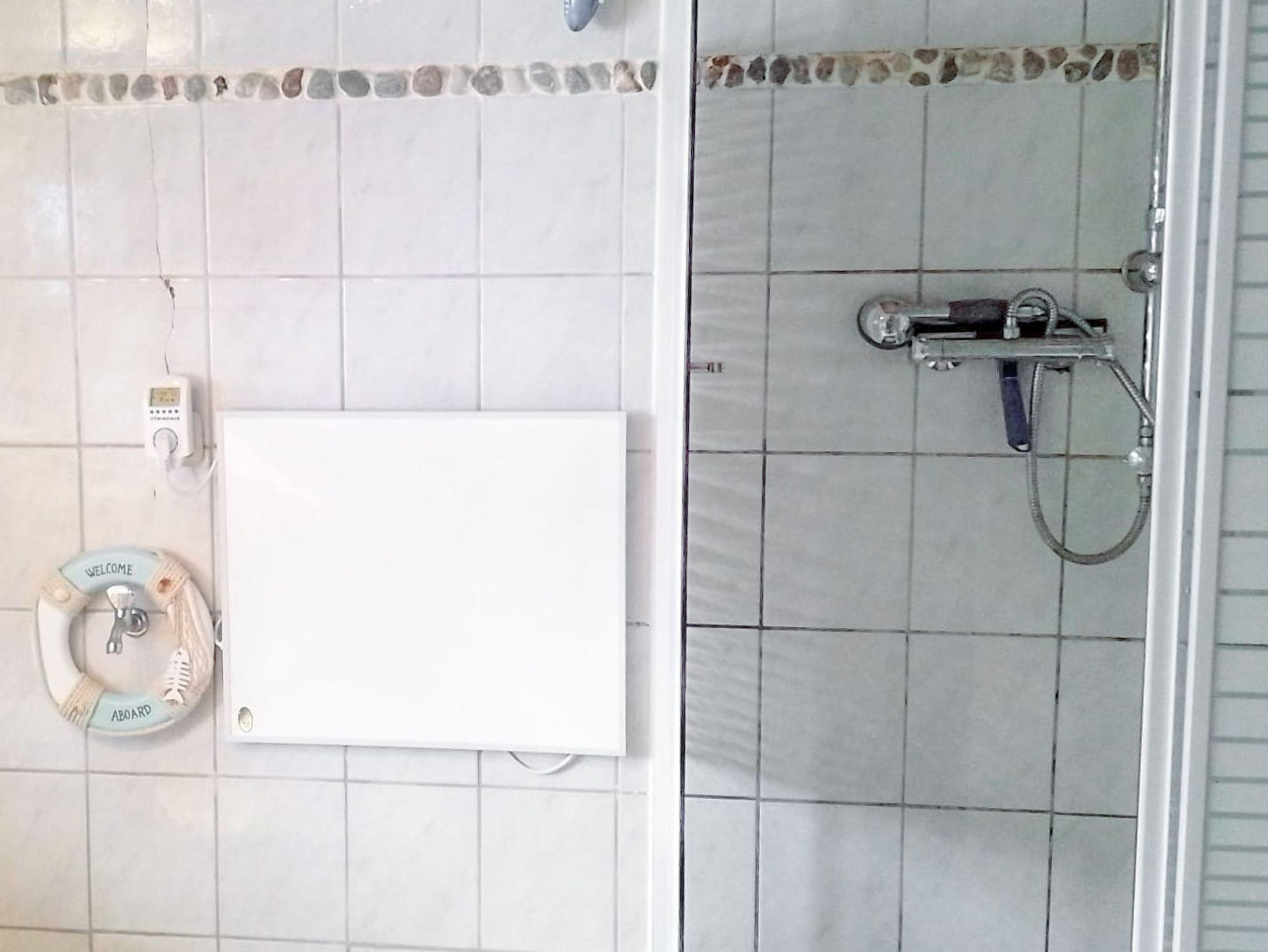 Im Wohnbereich befindet sich auch ein ausziehbares Sofa für max. 2 Personen. Ein weiteres Schlafsofa befindet sich im Schlafzimmer (Kinderaufbettung). Im Schlafzimmer (Doppelbett) überdachen Sie Teile eines alten Fischernetzes. Wenn Sie vom Badetag oder einer Radwanderung nach Hause kommen, können Sie sich unter der Dusche im geräumigen Bad entspannen.