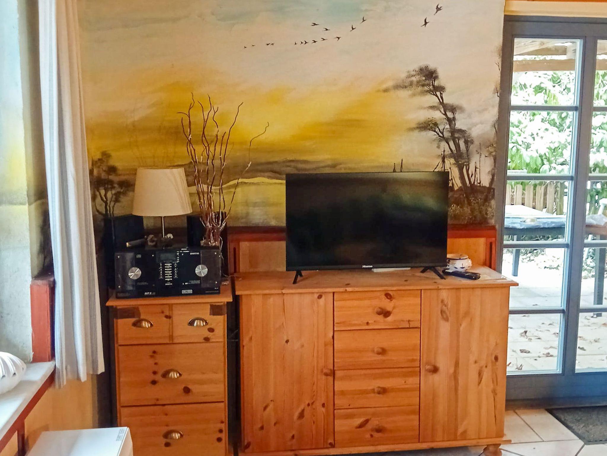 Sie können auch den Fernseher, Videorecorder oder CD-Player anstellen, wenn Sie sich nicht vom Wohnzimmer aus auf die eigene Terrasse mit Sitz/Liegegruppe begeben wollen, um sich hier zu erholen oder im Frühjahr bzw. Herbst die ziehenden Kraniche und Gänse ansehen bzw. anhören wollen.