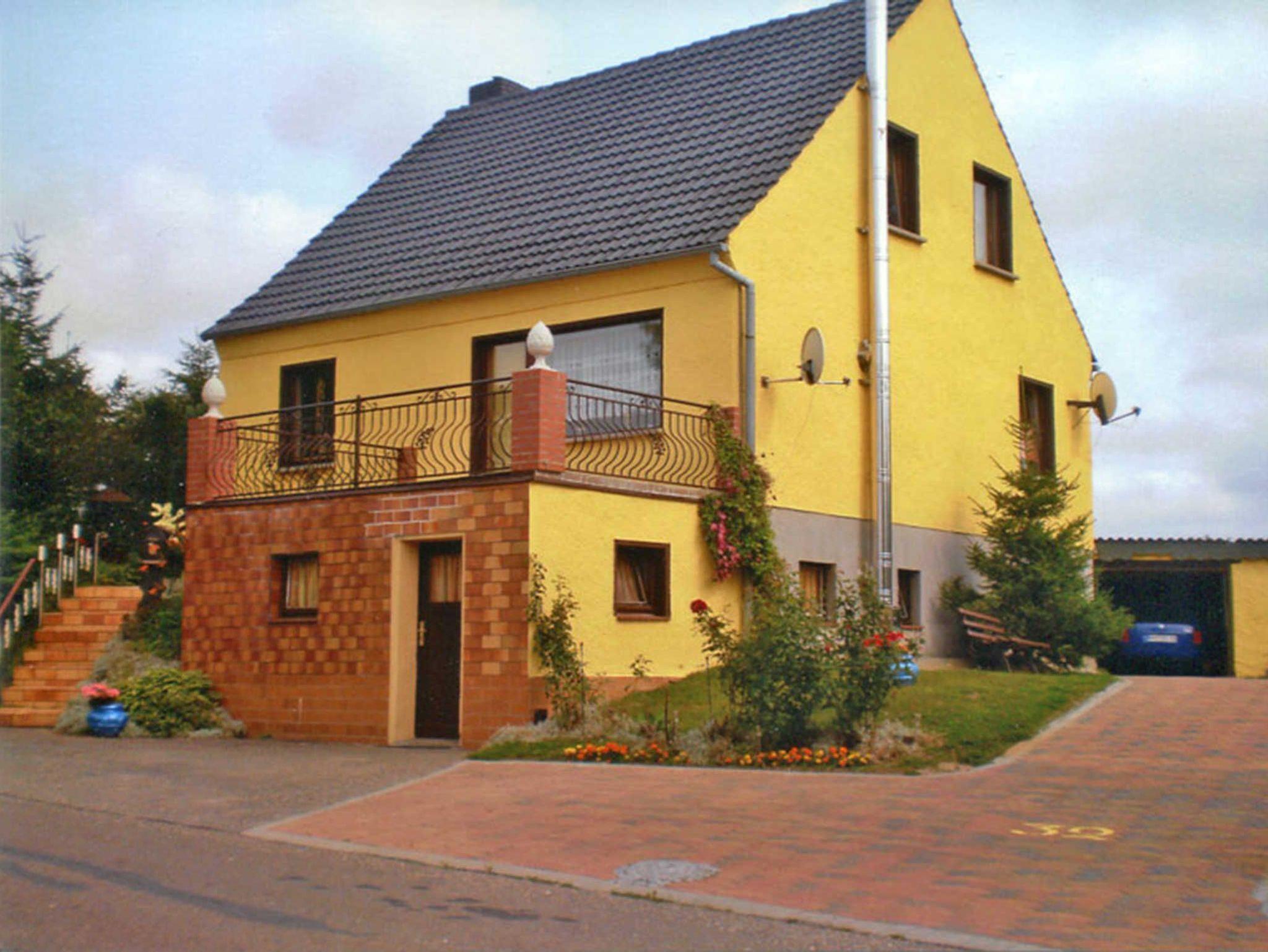 Die 70m²-Ferienwohnung befindet sich im Souterrain. Sie ist aufgeteilt in Bad, Schlafzimmer für 2-3 Personen (Doppelbett + Schlafcouch) und Wohnzimmer mit integrierter Küche mit Gasherd. Im Wohnzimmer sind 2 Aufbettungen auf der Schlafcouch möglich. Ein selbst mitgebrachtes Baby-Reisebett kann im Schlafzimmer aufgestellt werden.
