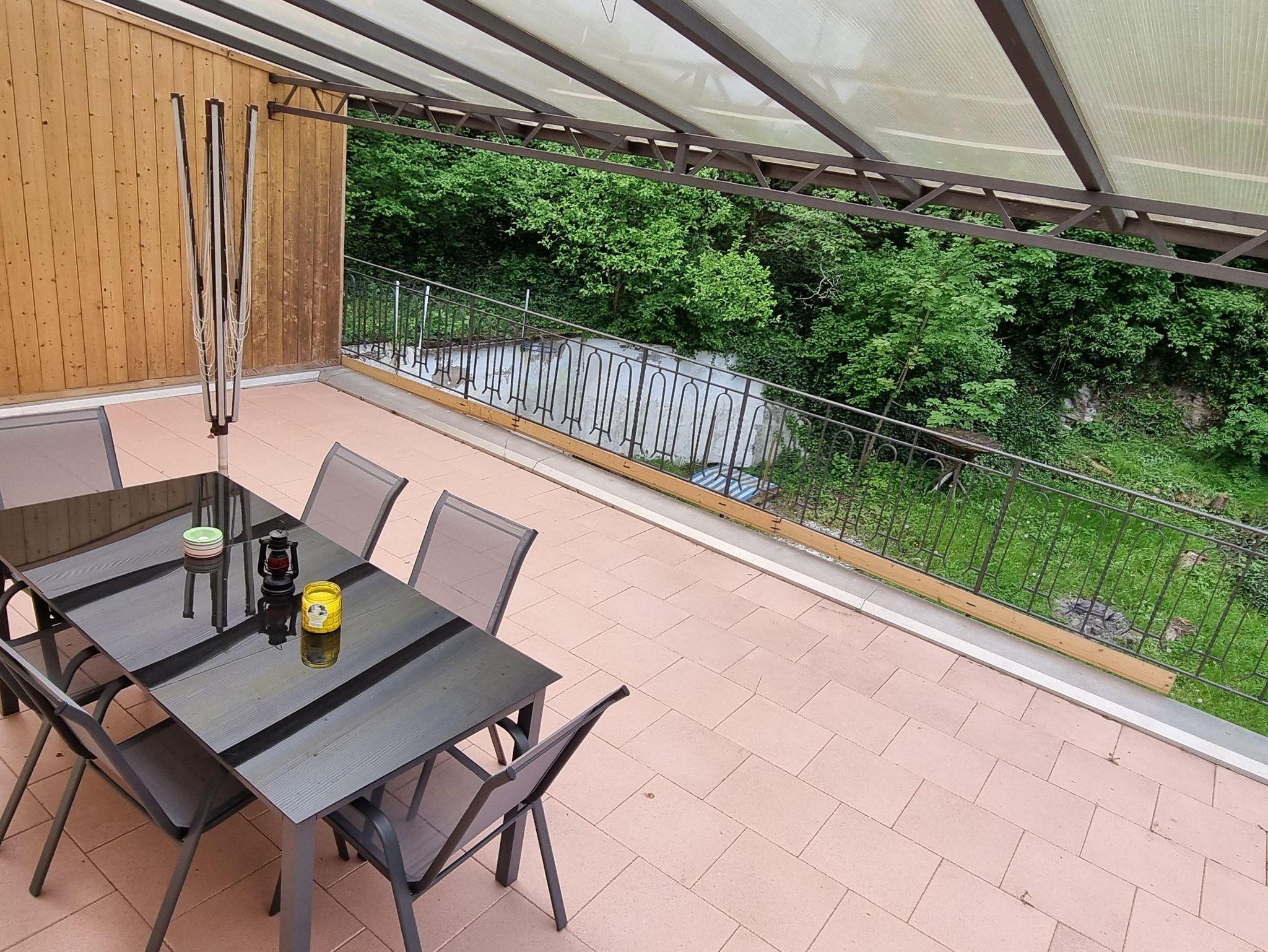 Das Ferienhaus hat zwei Etagen. Im Erdgeschoss befindet sich ein Schlafzimmer, eine Gästetoilette, ein Essbereich mit Kachelofen und eine Küche mit angrenzendem Abstellraum. Im ersten Stock befinden sich zwei weitere Schlafzimmer, ein großes Bad mit Dusche und Eckbadewanne, das Wohnzimmer und eine große Terrasse.