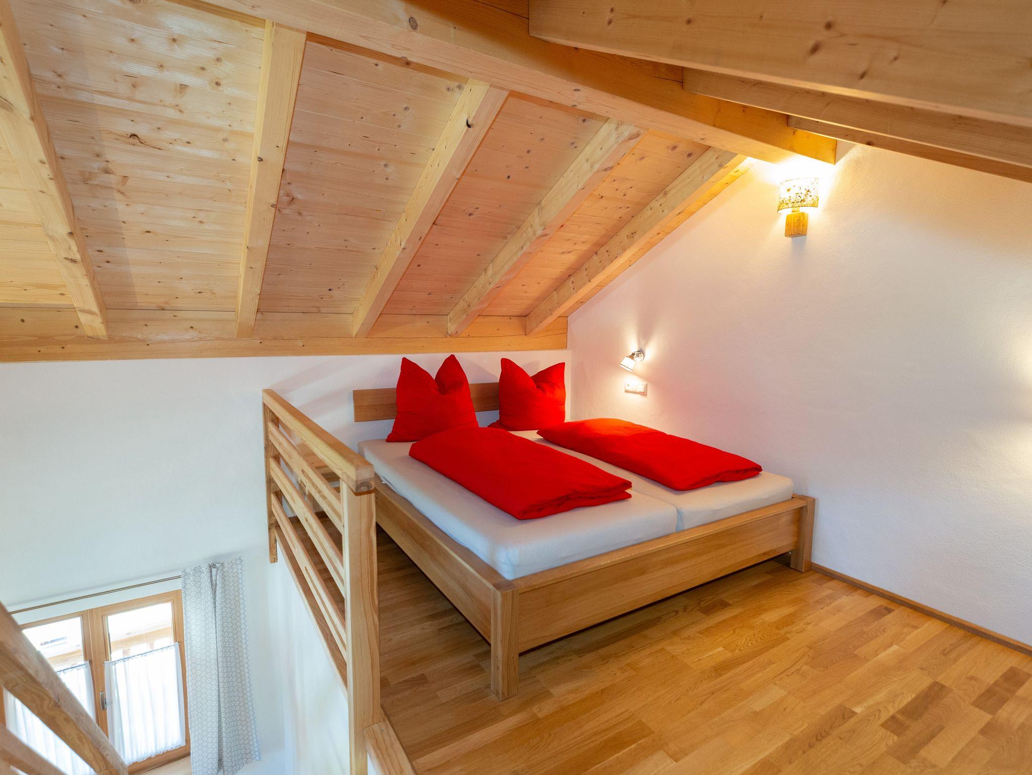 Die Ferienwohnung Nußlberg liegt im 1. Stock mit eigenem Eingang und Balkon. Die Betten befinden sich auf einer Galerie, es gibt ein Einzelbett und 1 Doppelbett. Der Wohn- Essbereich verfügt über eine voll ausgestattete Küche. Kostenloses W-Lan ist vorhanden.