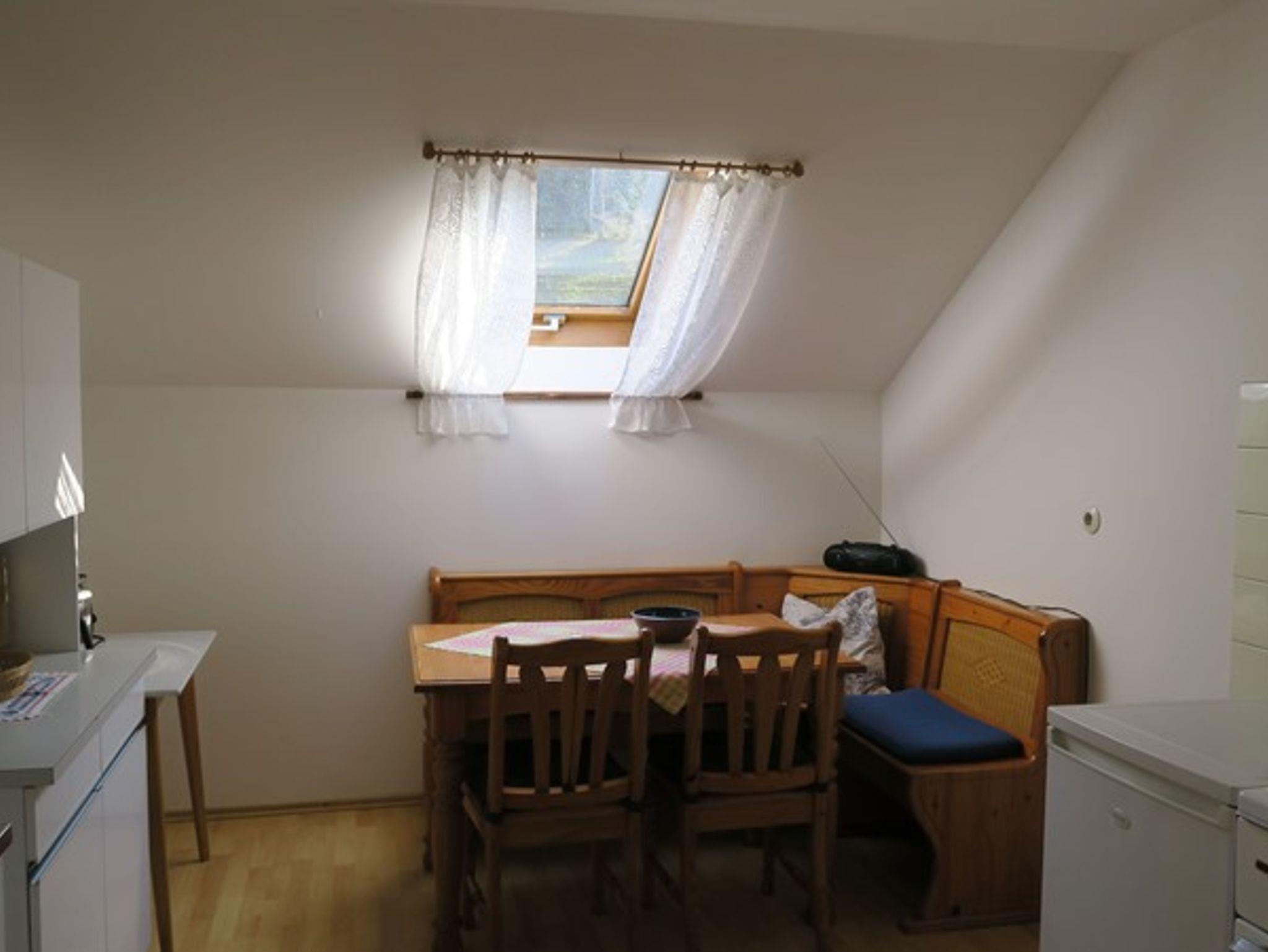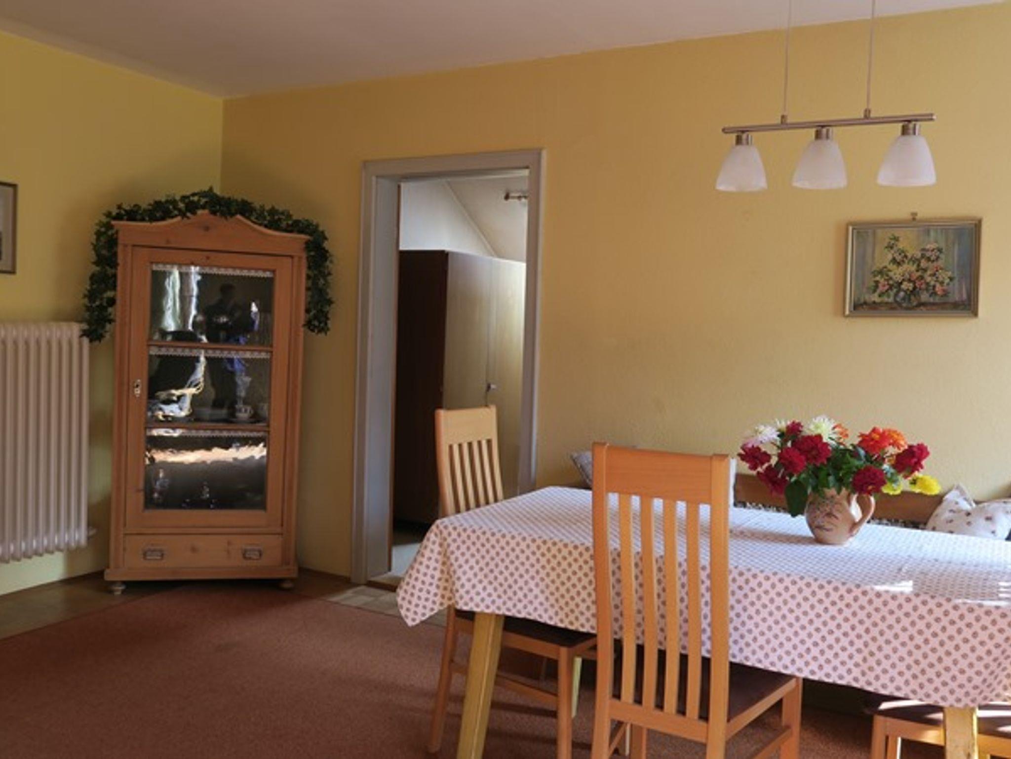 Die Ferienwohnung liegt im 2. Stock eines Bauernhofes Ausstattung: großer Flur, Wohnzimmer mit Couch, 2 Stühlen und Fernseher; zusätzlicher Esstisch, Bank und Stühle. 2 Schlafzimmer mit je einem Doppelbett (in einem dieser Schlafzimmer befindet sich eine zusätzliche Liege) und Kleiderschränken. Küche mit Eckbank und Stühlen, Bad mit Badewanne/WC. Bettwäsche und Geschirrtücher werden gestellt; Handtücher müssen von den Gästen selbst mitgebracht werden.