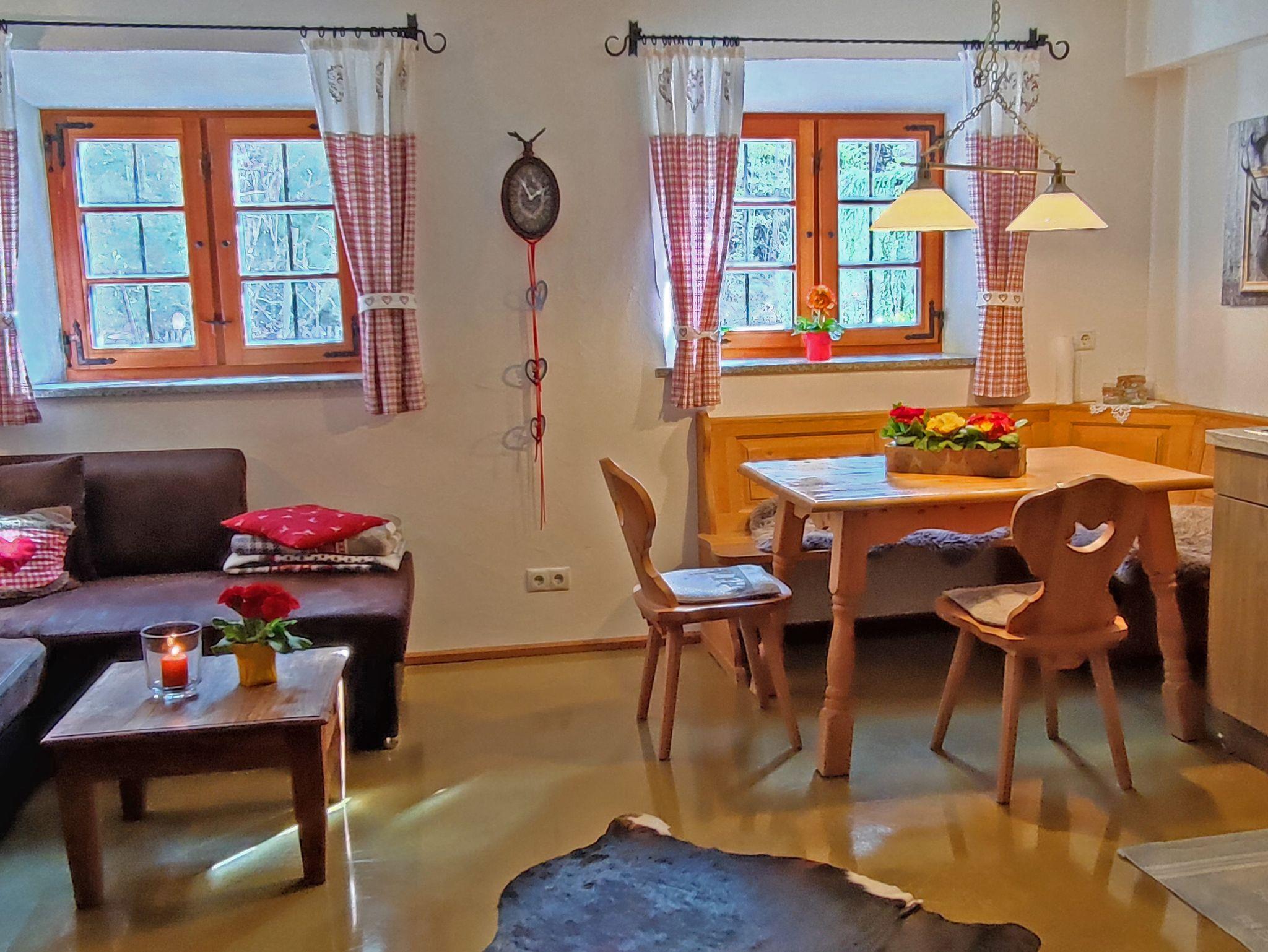Die Ferienwohnung Kieferbach befindet sich im Erdgeschoss (ca. 60 qm) und verfügt über einen eigenen Eingang und bietet Platz für max. 4 Personen. Kostenloses Wlan und Parkplätze stehen direkt an der Unterkunft zur Verfügung.Die Ferienwohnung ist liebevoll, im bayerischen Stil ausgestattet. Sie verfügt über einen kombinierten Wohn-Schlafraum mit ausziehbarer Schlafcouch, Eckbank und voll ausgestatteter Küche.Bad mit Dusche und WC und Waschmaschine. Die Ferienwohnung ist komplett mit Bodenheizung ausgestattet.Terasse mit Sonnenliegen sowie Sitzgelegenheiten stehen zur Verfügung.Für Kinder haben wir viele Brettspiele.