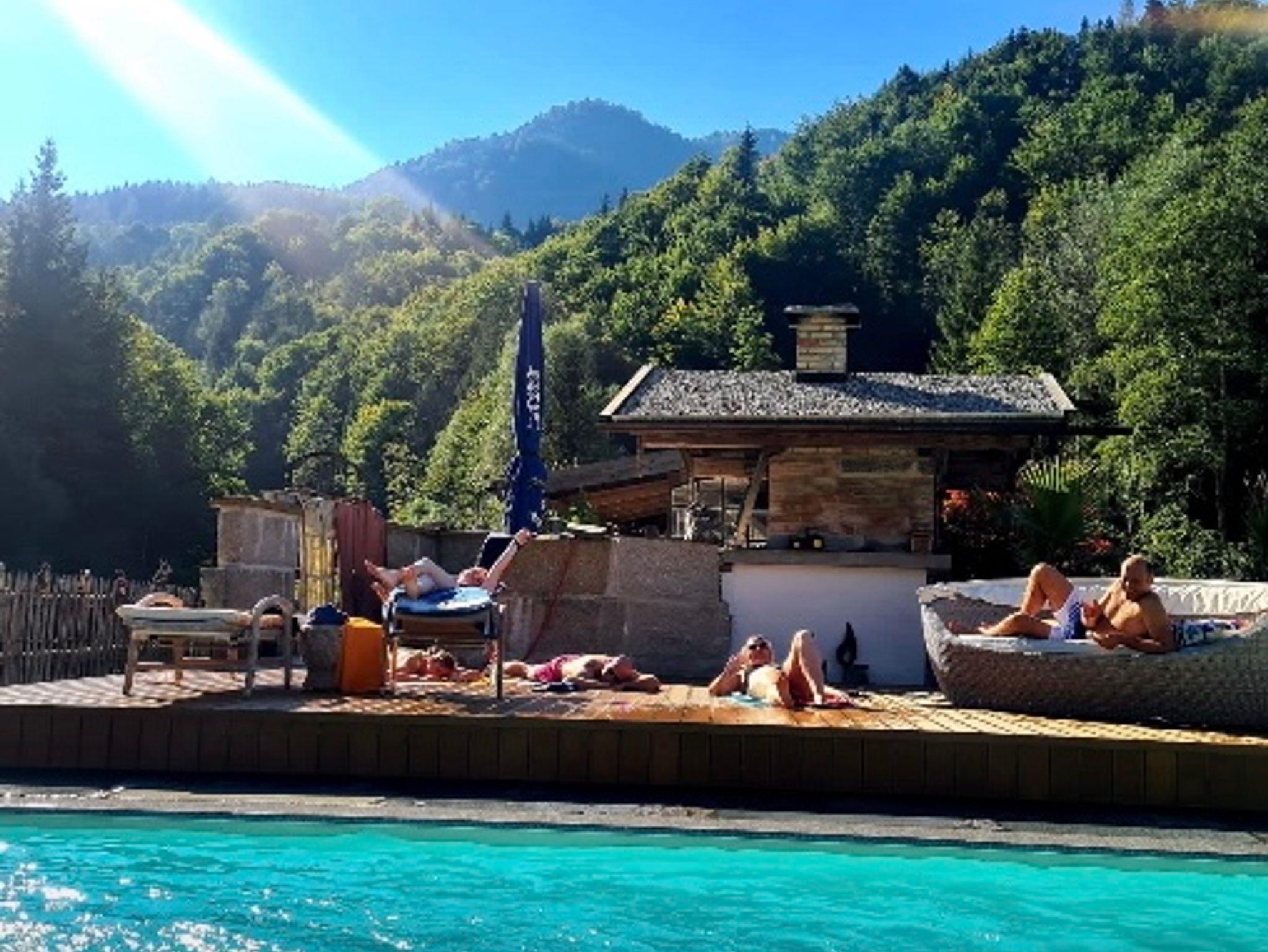 Urlaub im bayrischen Inntal / Kiefersfelden zur Grenze Tirol Kufstein. Direkt am idyllischen Kieferbach liegt das im Jahr 2012 erbaute Einfamilienhaus mit 3 geräumigen Ferienwohnungen . Der Swimmingpool im Garten von Mai bis August wird sowohl von den Gästen auch als von der Vermieterfamilie genutzt.