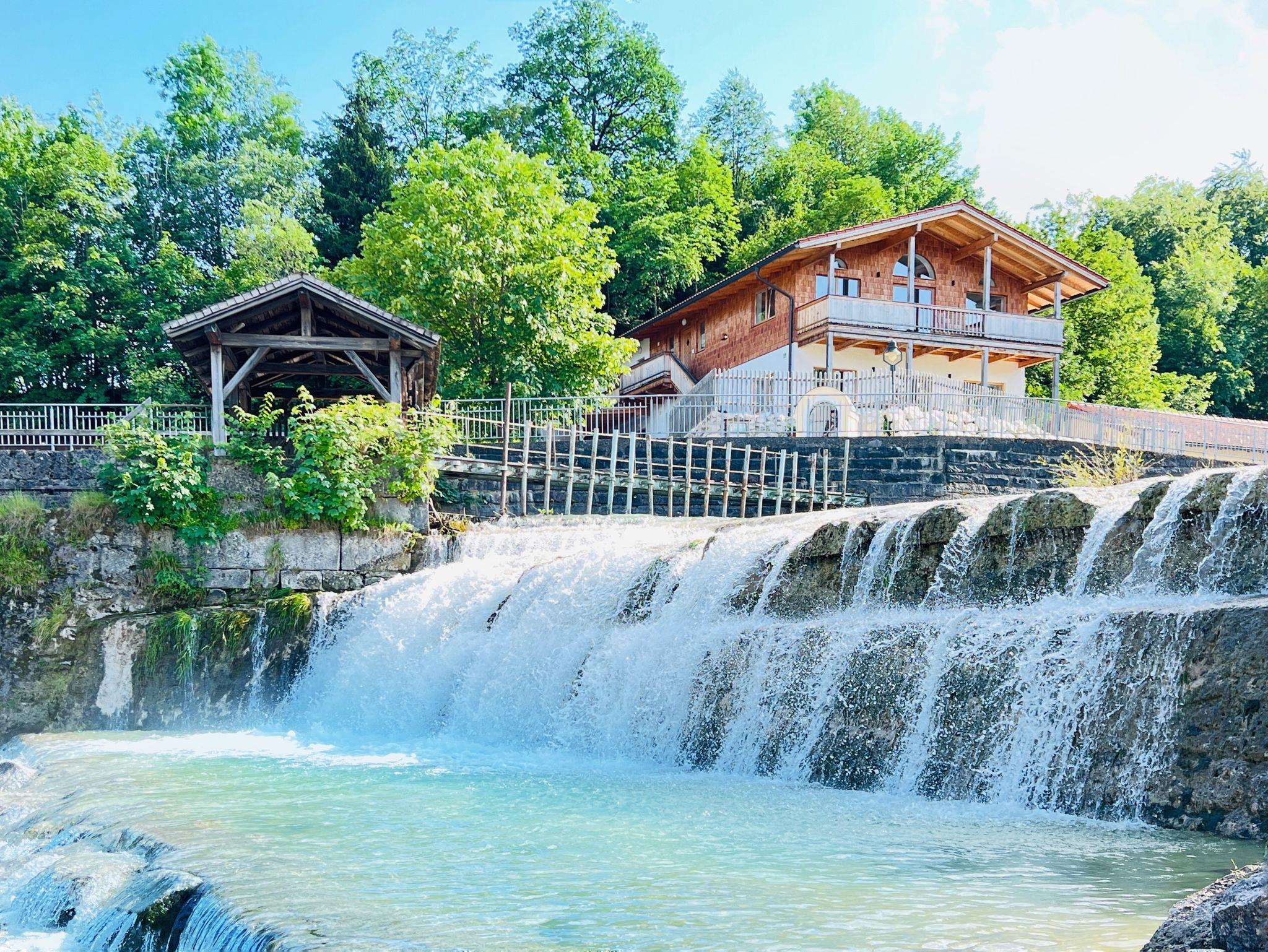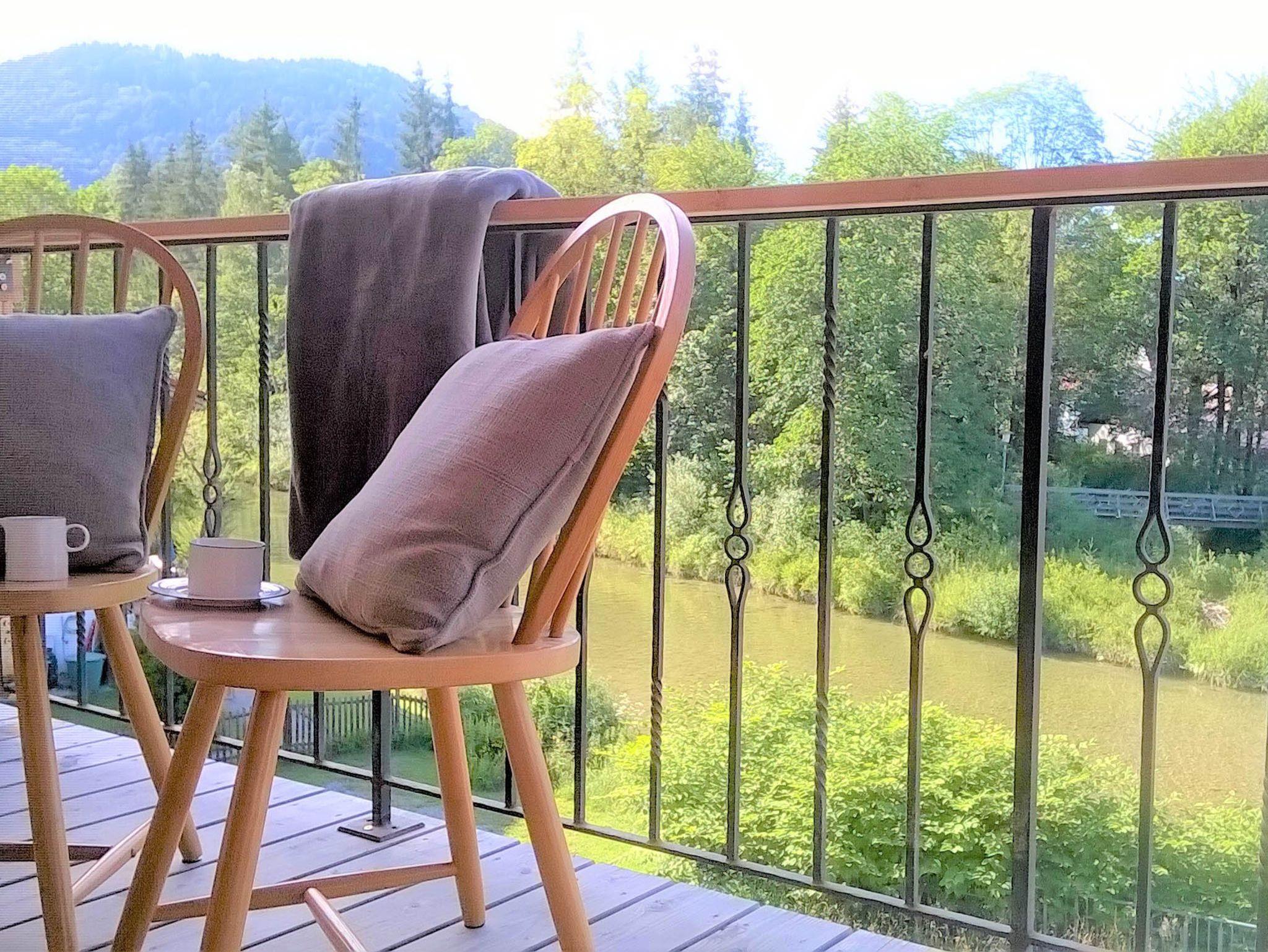 Im Sommer lädt der großzügig, überdachte Balkon mit einem herrlichen Panoramablick zum Entspannen ein. Nehmen Sie dort gemütlich im Schatten ihren Nachmittagskaffee ein und freuen Sie sich, wenn Sie auf den Kieferbach Enten oder Fische vorbeischwimmen sehen. Auch am Abend lässt sich dort, nach einer anstrengenden Bergtour oder einem entspannten Badetag, bei einem Glas Wein der Tag gemeinsam beenden und das Glitzern des Wassers und der Sterne genießen.
