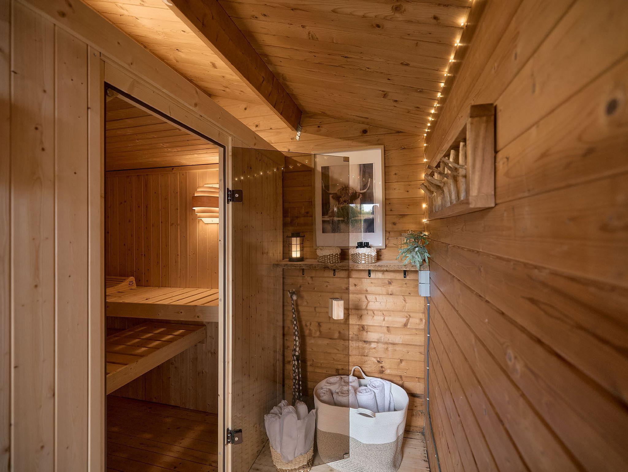 Sie das Bergpanaroma bewundern, das das Haus umgibt. Im Außenbereich befindet sich ein privater Garten und eine großzügige Sauna.