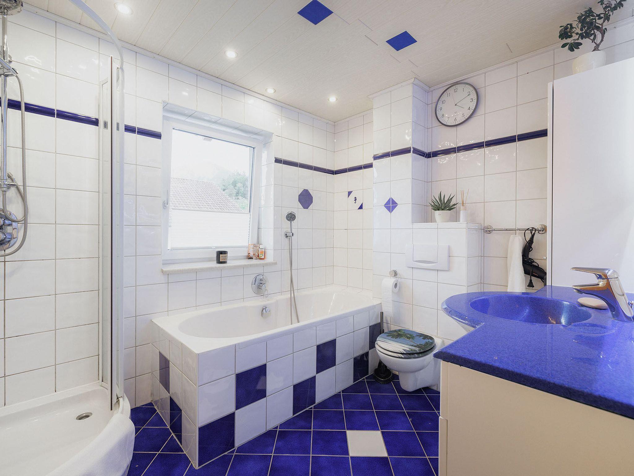 Badezimmer: 1 kleines mit WC und Waschbecken im EG, ein großes mit WC, Dusche & Badewanne im 1. OG & ein kleines mit WC, Dusche & Waschbecken im 2. OG
