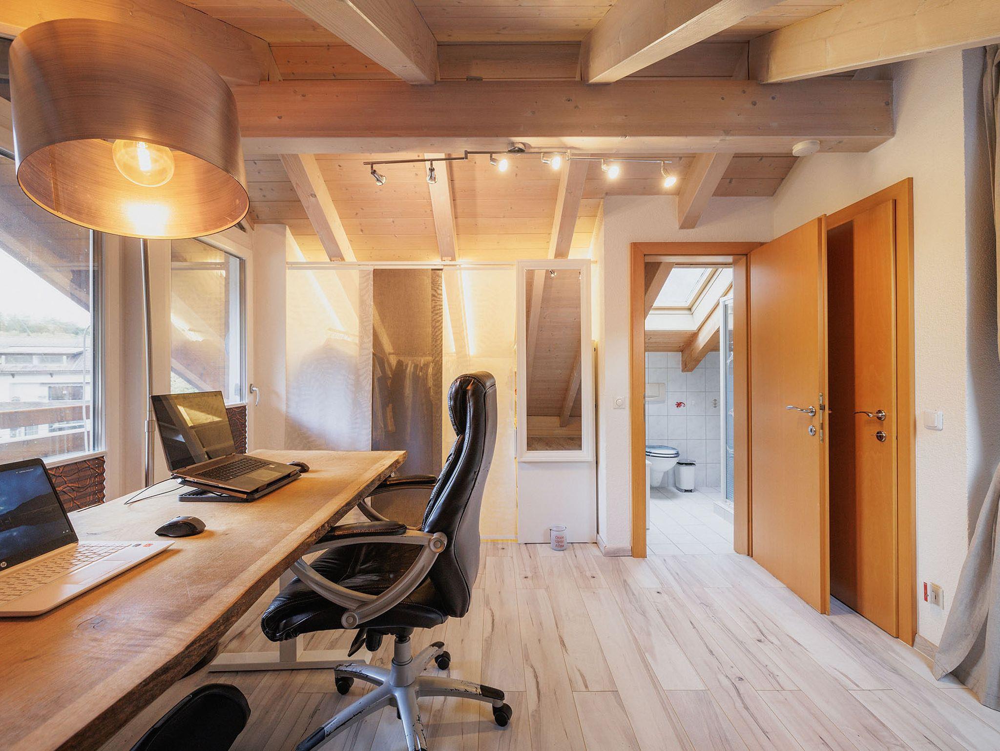 & einem großen Arbeitsplatz ausgestattet ist, von hier aus können