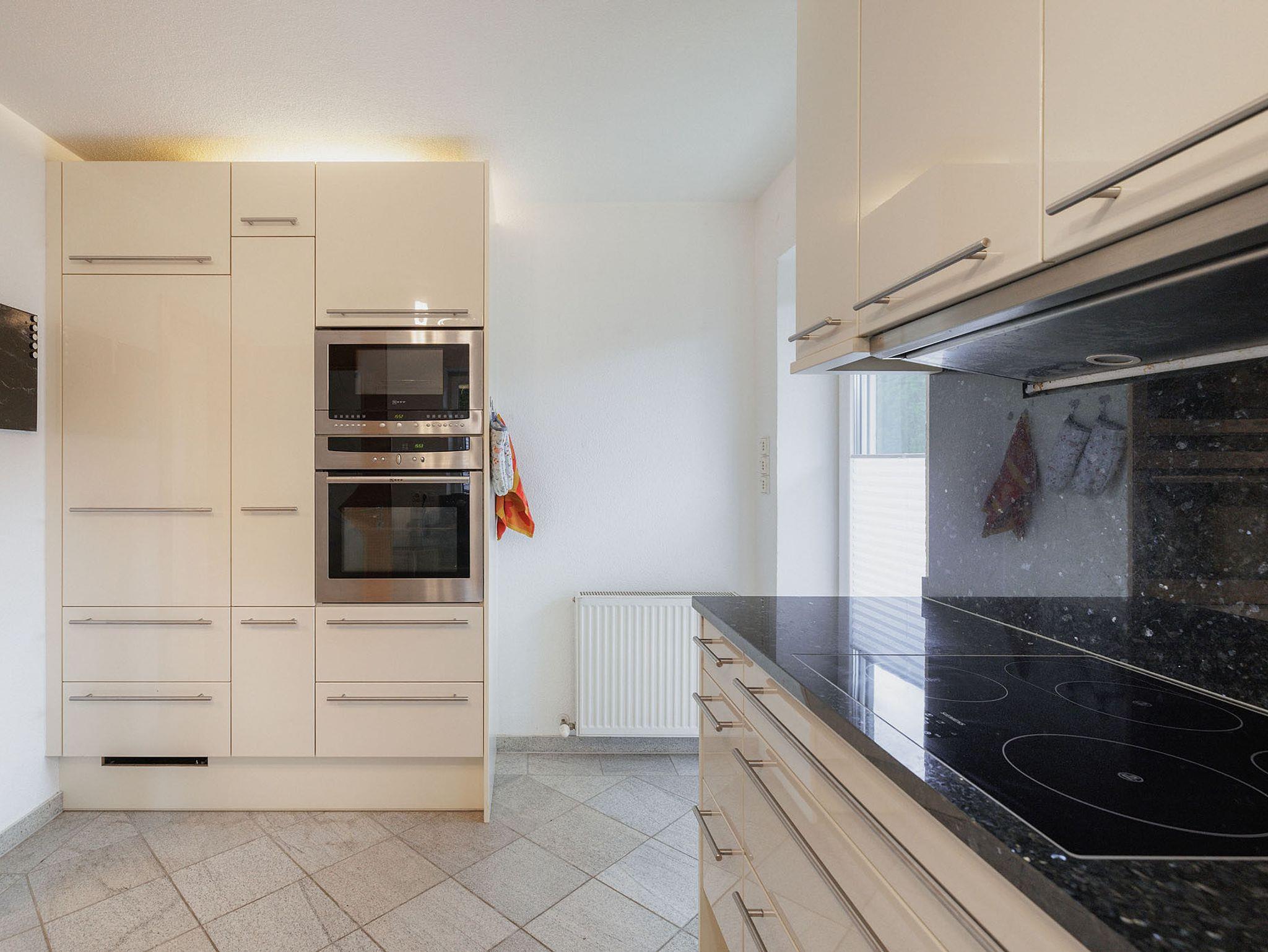 Küche: voll ausgestattet mit Induktionsherd, Backofen, Mikrowelle, Toaster, Kaffeemaschine & sämtlichen Küchenuntensilien, Geschirr, Besteck & Weingläsern