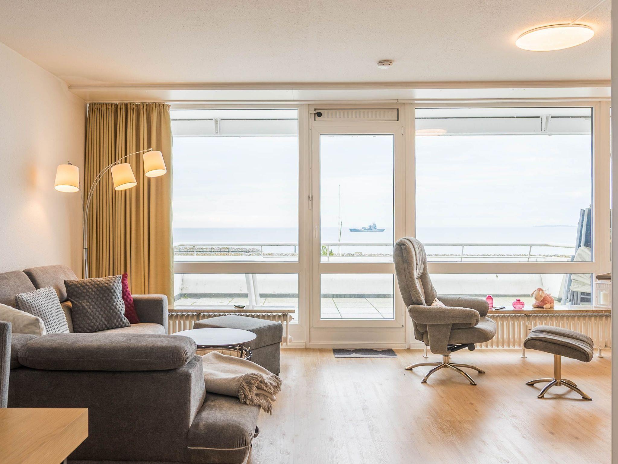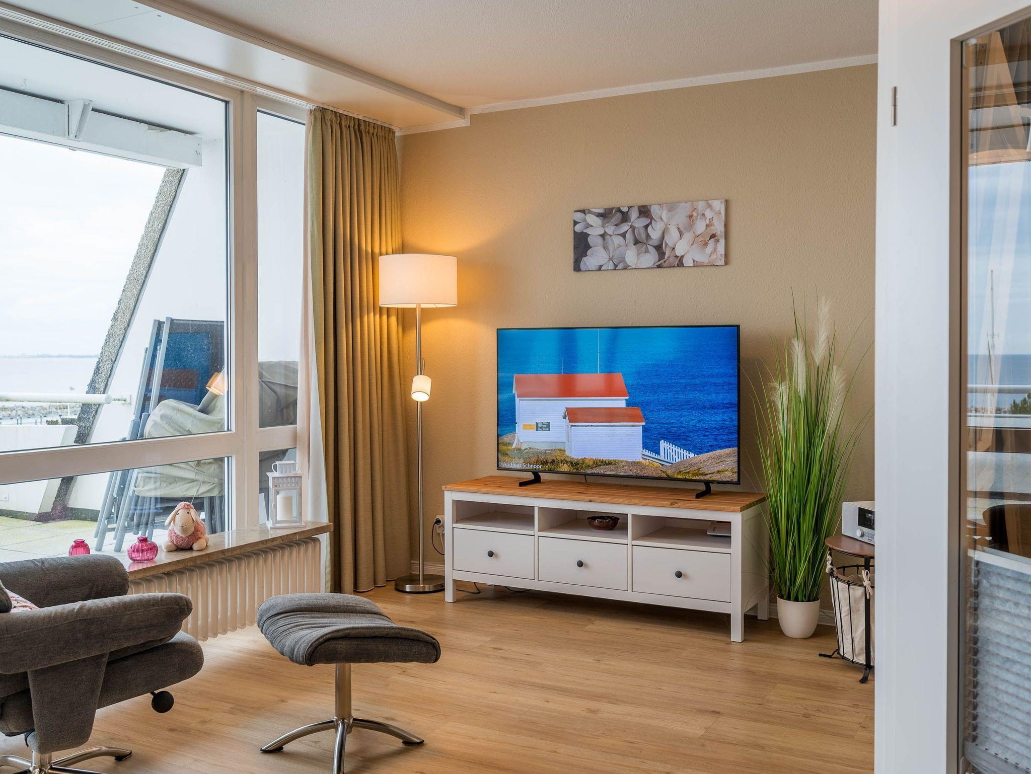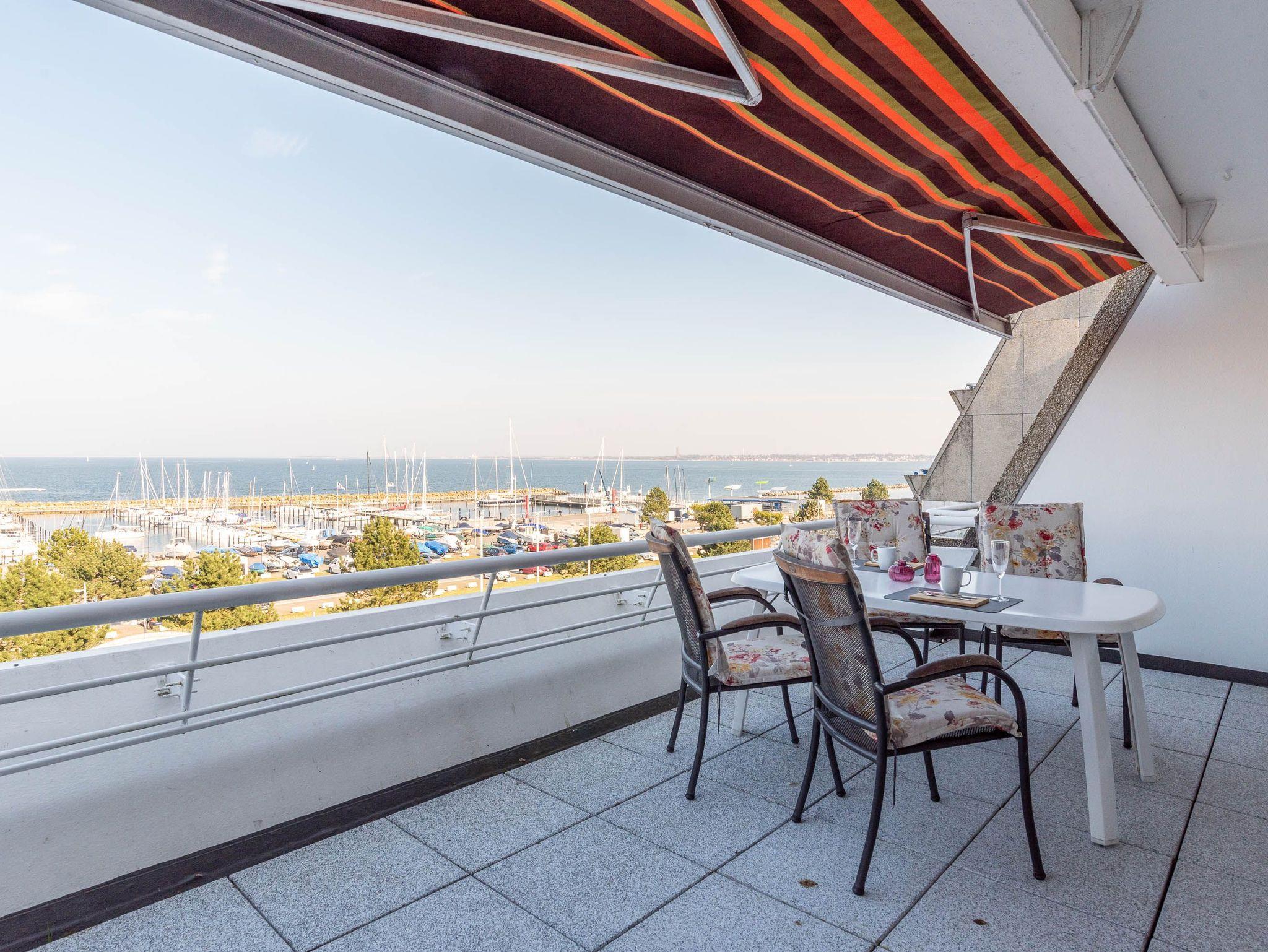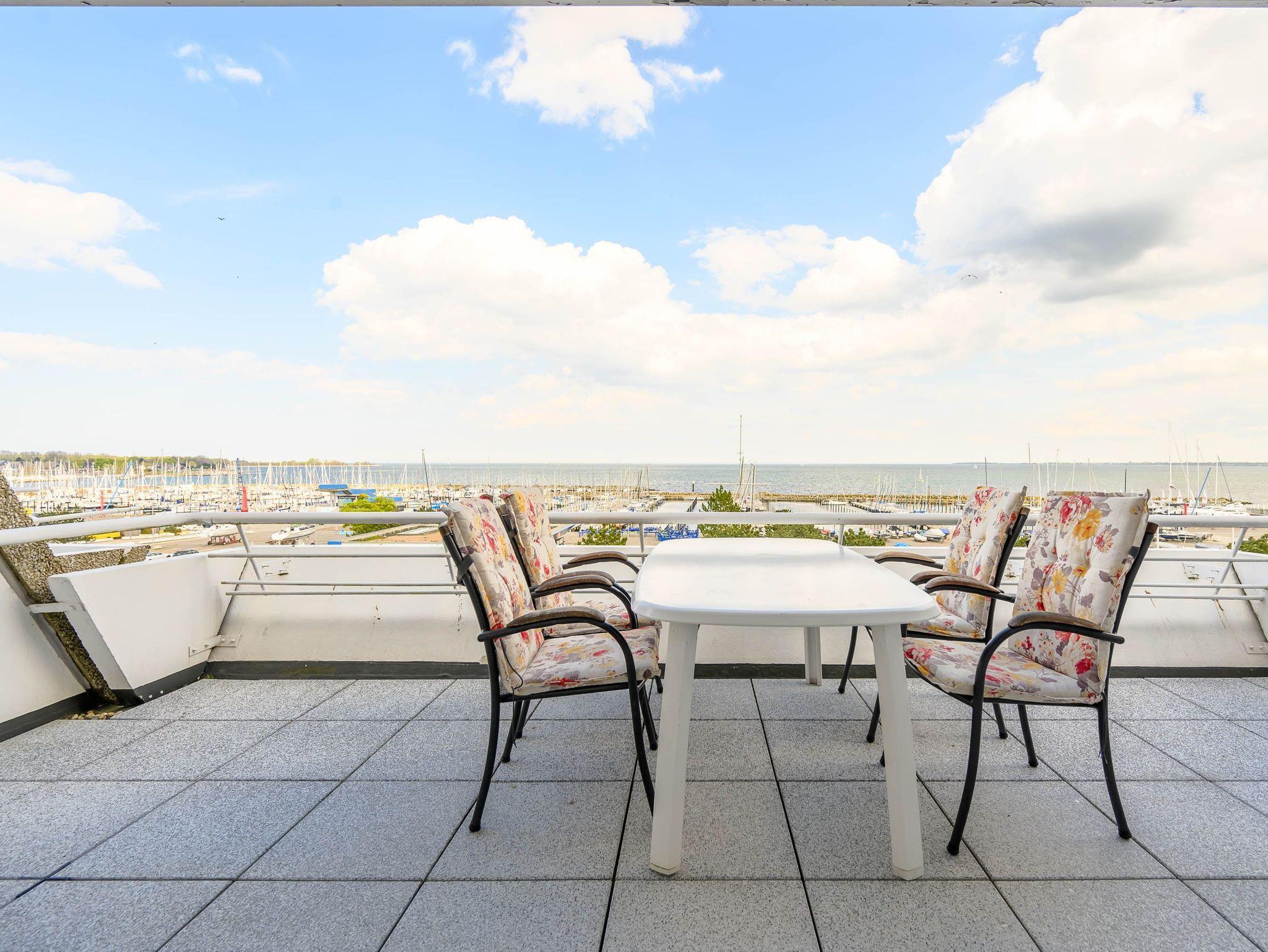 Reinkommen, staunen und sich wohlfühlen lautet hier das Motto für Ihren Urlaub. Das 1,5-Zimmerappartement ist hell und freundlich im maritimen Stil ausgestattet und besticht durch den traumhaften Blick auf die Ostsee, den Segelhafen, den Strand und Schiffe, Schiffe, Schiffe. Es ist immer was los und zu bestaunen und zu gucken - sehen und erleben Sie es selbst. Ein bequemes Sofa lädt zu gemütlichen Abenden ein und lässt sich mit wenigen Handgriffen zur Schlafgelegenheit für eine 3. Person umbauen. Im Schlafzimmer befindet sich das Doppelbett (180 x 200). Die Einbauküche Herd, Backofen, Geschirrspüler und Kühlschrank lädt zu gemeinsamen Kochaktionen mit Meeresblick ein. Ein Esstisch mit 4 Stühlen, ein Sessel mit Fußhocker, ein Sideboard und mit einem 60 Zoll TV vervollständigen das runde Gesamtbild der Wohnung. Im Flur befinden sich ein Einbauschrank und das neue und moderne Badezimmer ist mit Dusche, Waschbecken, WC und einer Waschmaschine ausgestattet. Der große Balkon lädt - ausgestattet mit Markise, Stühlen und einem Tisch - zum gemütlichen Frühstück bei romantischen Sonnenaufgang ein - lassen Sie sich zu jeder Zeit verzaubern und die Seele baumeln beim Panoramablick auf die Ostsee.