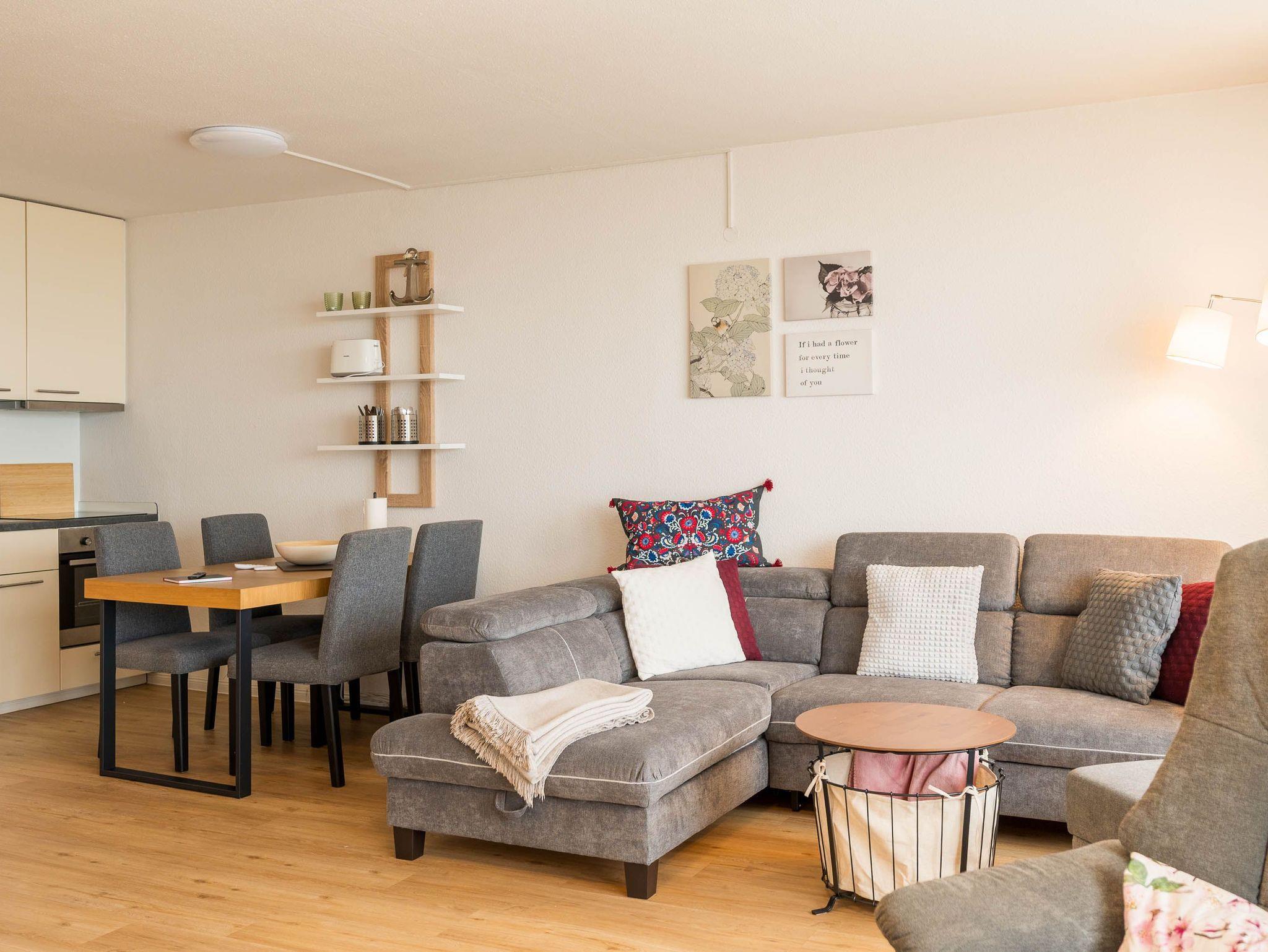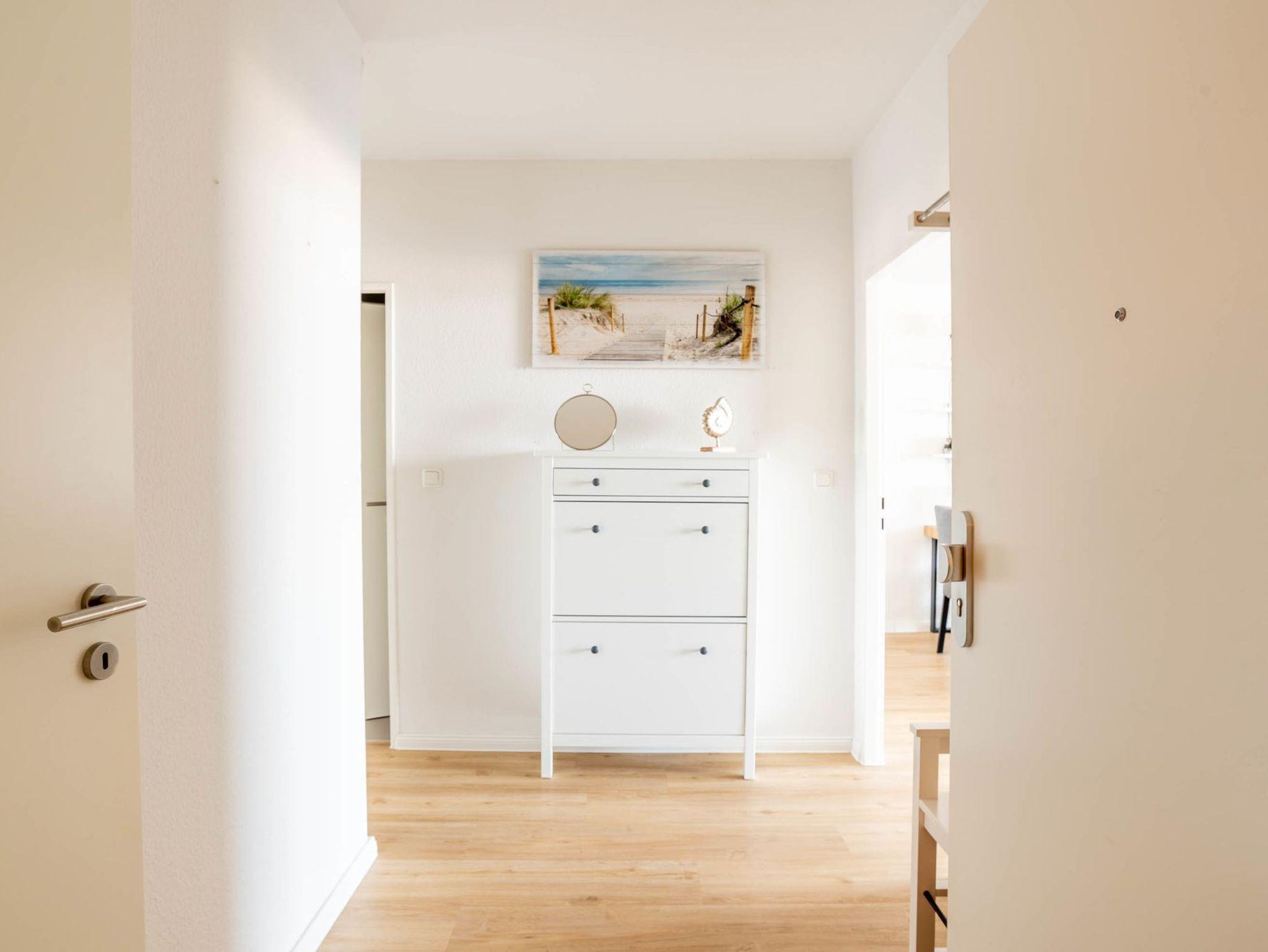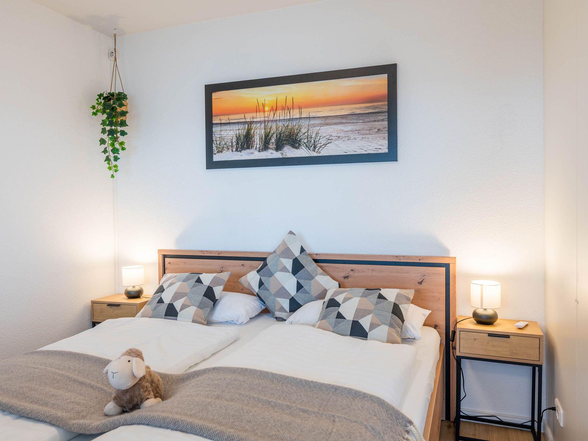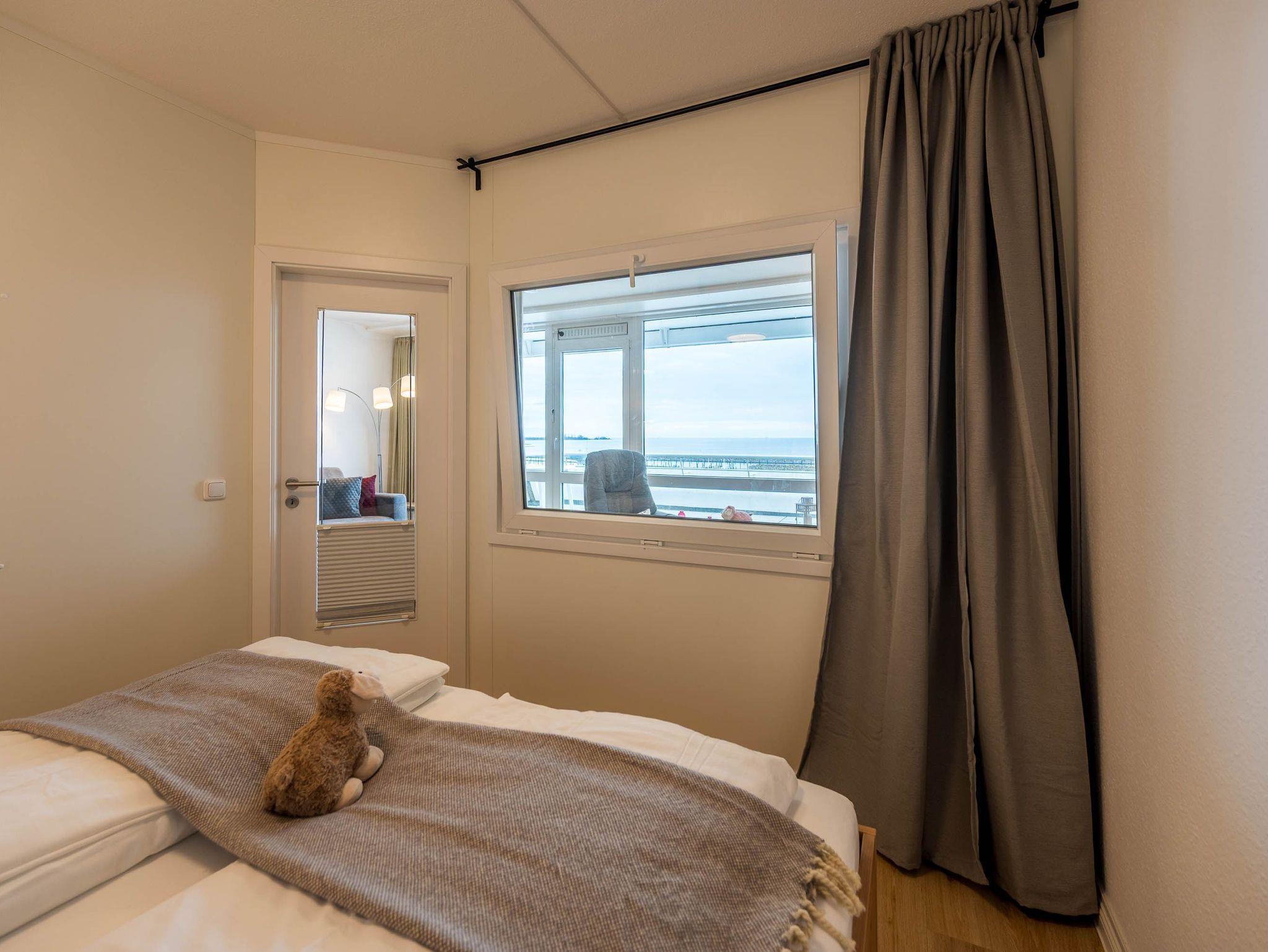 Reinkommen, staunen und sich wohlfühlen lautet hier das Motto für Ihren Urlaub. Das 1,5-Zimmerappartement ist hell und freundlich im maritimen Stil ausgestattet und besticht durch den traumhaften Blick auf die Ostsee, den Segelhafen, den Strand und Schiffe, Schiffe, Schiffe. Es ist immer was los und zu bestaunen und zu gucken - sehen und erleben Sie es selbst. Ein bequemes Sofa lädt zu gemütlichen Abenden ein und lässt sich mit wenigen Handgriffen zur Schlafgelegenheit für eine 3. Person umbauen. Im Schlafzimmer befindet sich das Doppelbett (180 x 200). Die Einbauküche Herd, Backofen, Geschirrspüler und Kühlschrank lädt zu gemeinsamen Kochaktionen mit Meeresblick ein. Ein Esstisch mit 4 Stühlen, ein Sessel mit Fußhocker, ein Sideboard und mit einem 60 Zoll TV vervollständigen das runde Gesamtbild der Wohnung. Im Flur befinden sich ein Einbauschrank und das neue und moderne Badezimmer ist mit Dusche, Waschbecken, WC und einer Waschmaschine ausgestattet. Der große Balkon lädt - ausgestattet mit Markise, Stühlen und einem Tisch - zum gemütlichen Frühstück bei romantischen Sonnenaufgang ein - lassen Sie sich zu jeder Zeit verzaubern und die Seele baumeln beim Panoramablick auf die Ostsee.