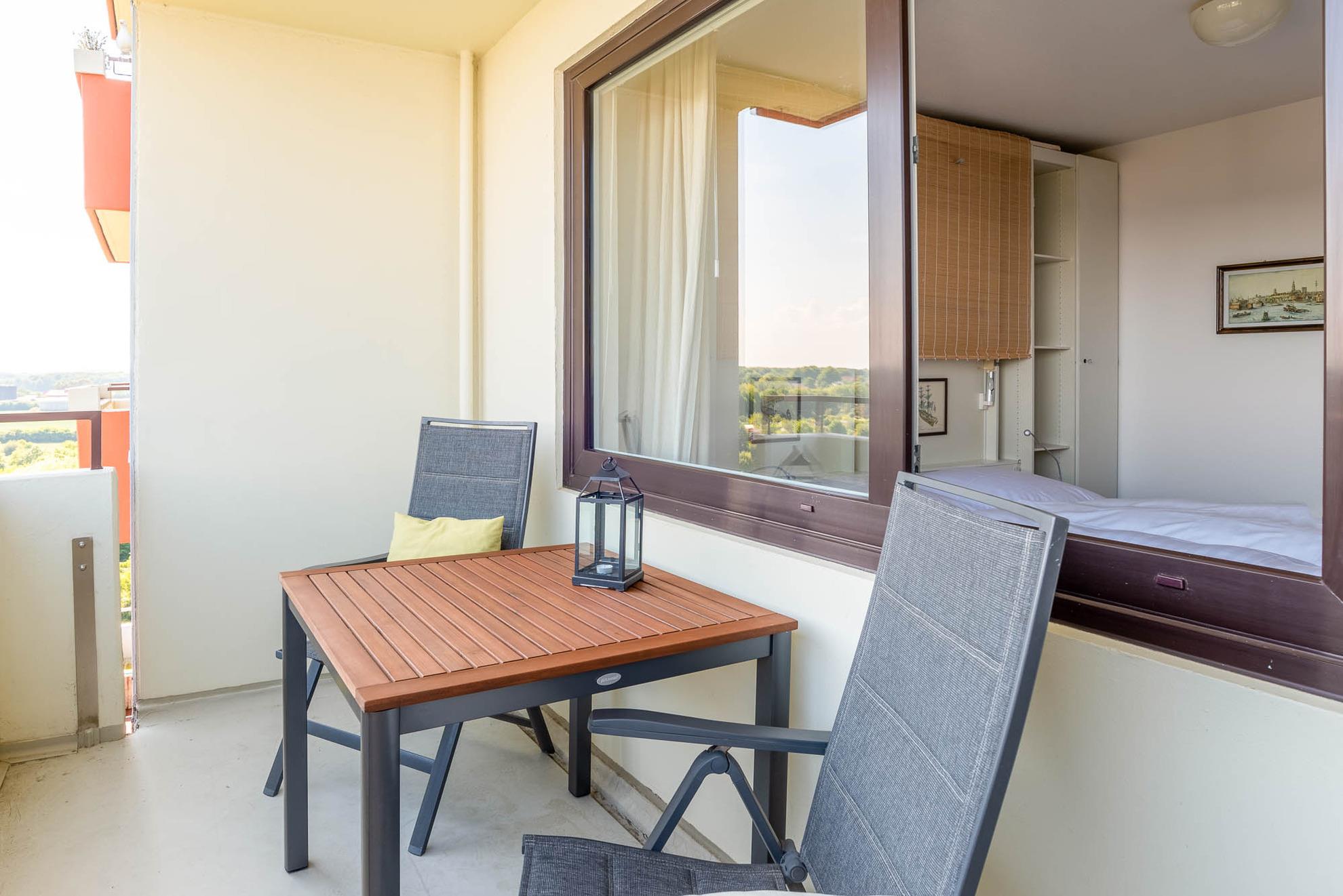 Erleben Sie die Kieler Förde aus einer einzigartigen Perspektive! Die lichtdurchflutete 2-Zimmer-Wohnung im 10. Stock bietet Platz für bis zu zwei Personen und einen unvergleichlichen Panoramablick auf die Ostsee.