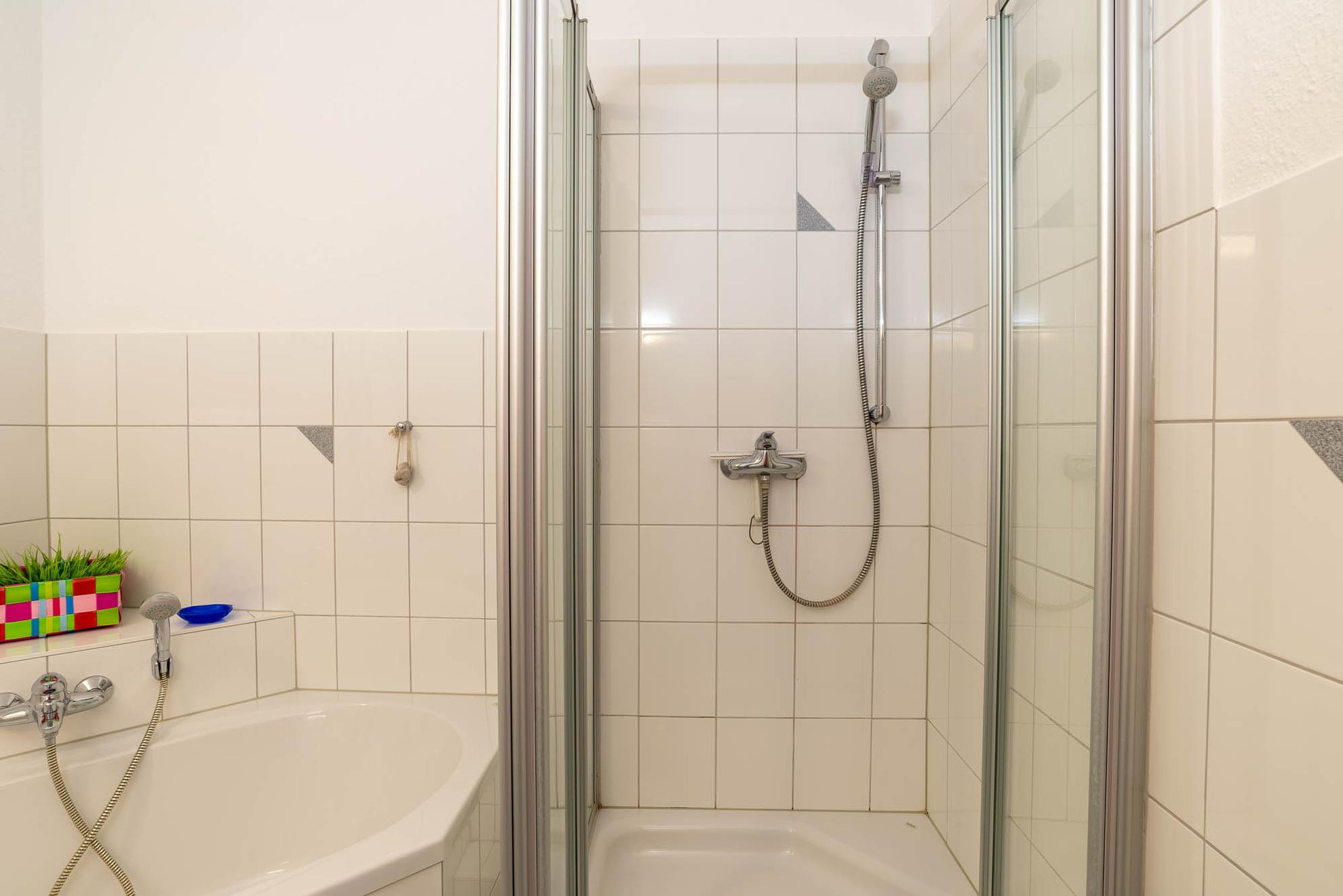Badeværelse med bruser og badekar