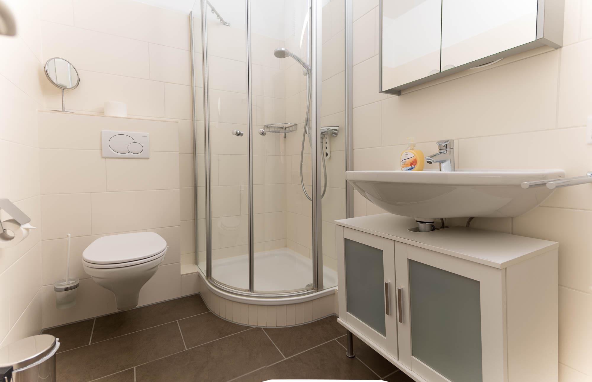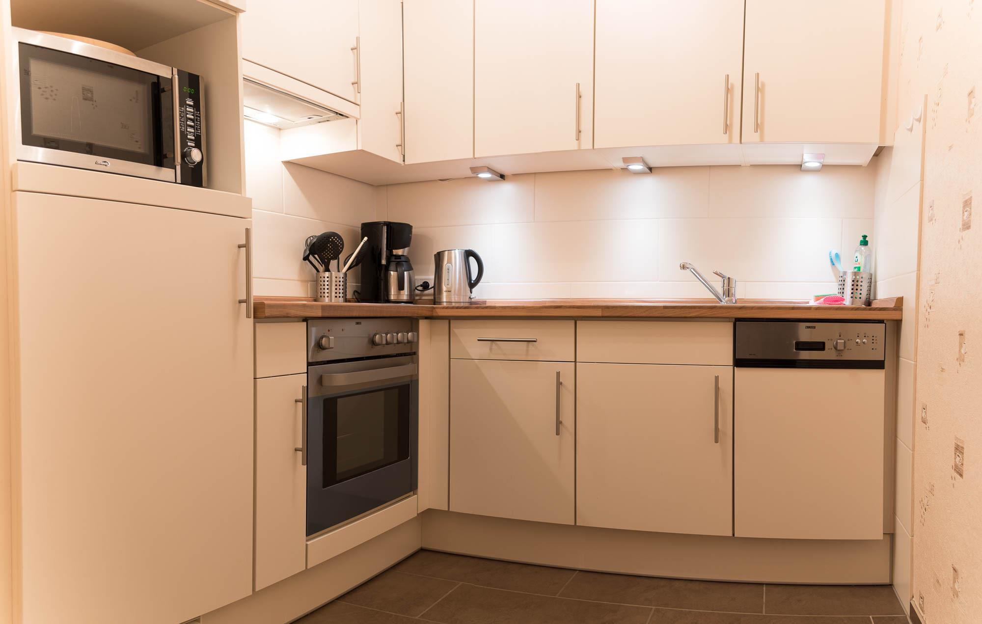 Die Küche ist mit Geschirrspüler, Mikrowelle, Herd und Kühlschrank mit integriertem Gefrierfach ausgestattet. Toaster, Wasserkocher und Kaffeemaschine finden Sie ebenfalls vor. Ein modernes Bad mit Eckdusche und WC runden diese schöne Wohnung ab.