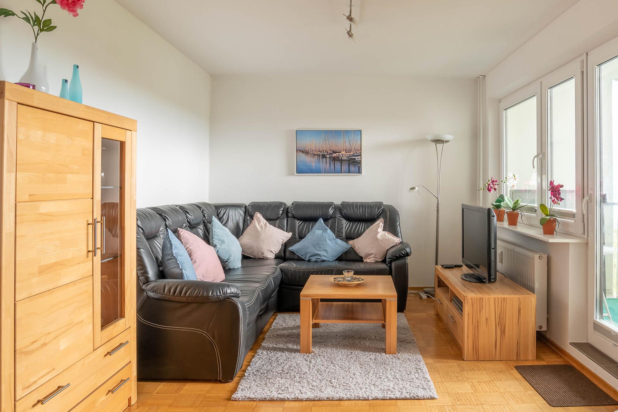 Die gemütliche Ferienwohnung bietet Platz für bis zu 2 Personen. Im kombinierten Wohn- Schlafraum befindet sich eine hochwertige und gemütliche Ledereckcouch. Das Doppelbett (Liegefläche 180x200 cm) ist in einer Nische platziert. Ein Esstisch mit drei Stühlen bietet Platz zum gemeinsamen Beisammensitzen. Für die Abende finden Sie einen Flachbildschirmfernseher, eine Stereo-Anlage sowie einen DVD-Player und diverse Gesellschaftsspiele.