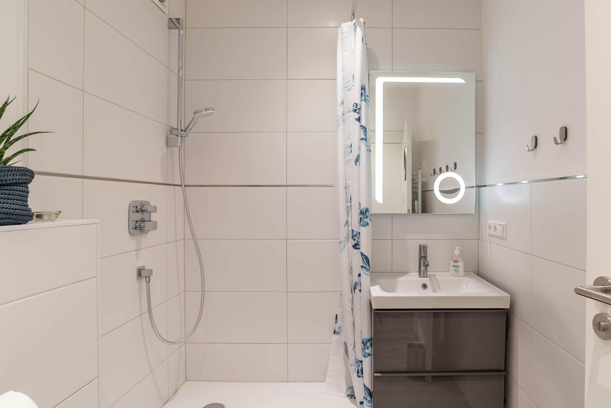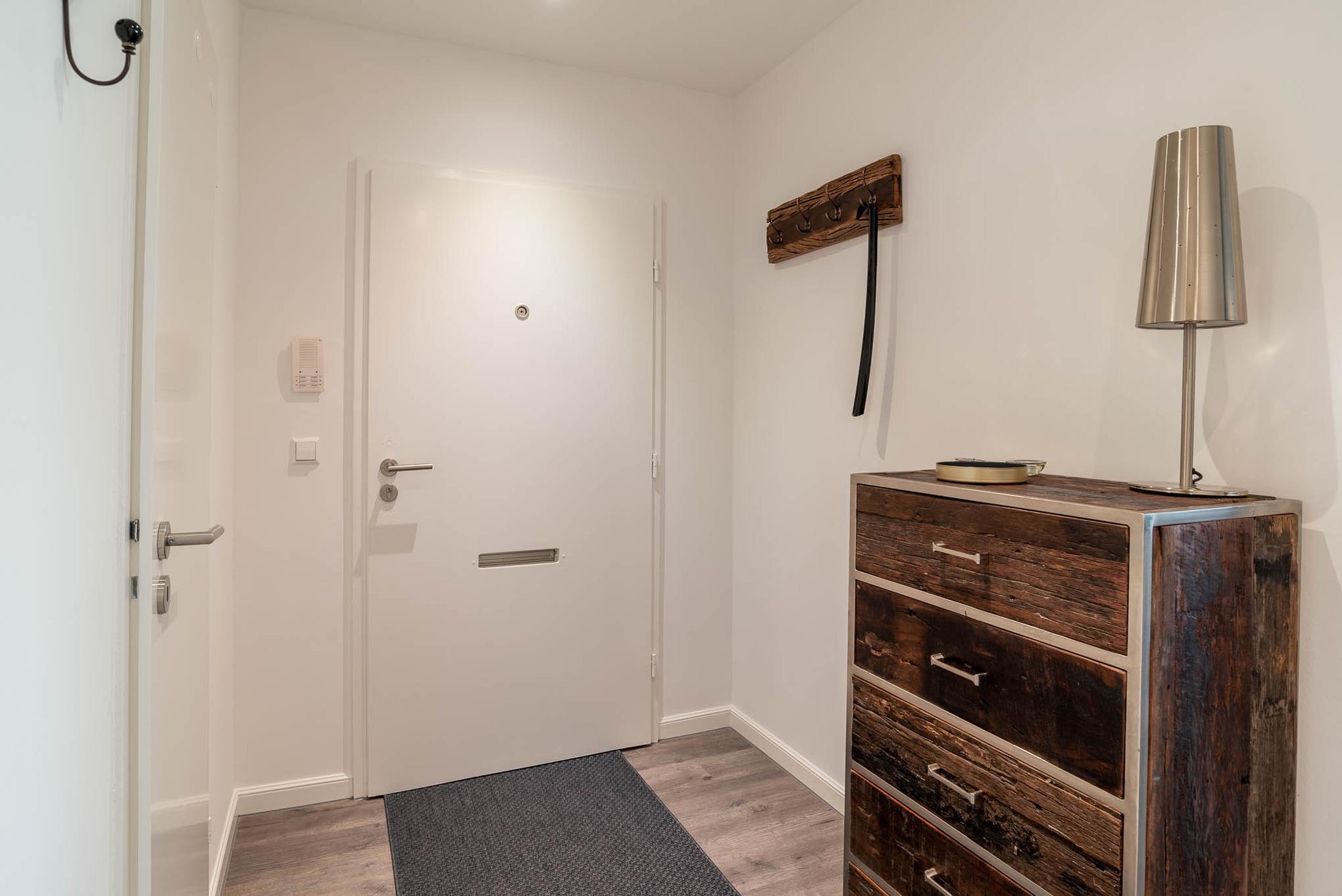 Die Wohnung ist mit einem Duschbad ausgestattet. Zum Flur gehört noch eine Abstellkammer und ein Kleiderschrank dazu.
