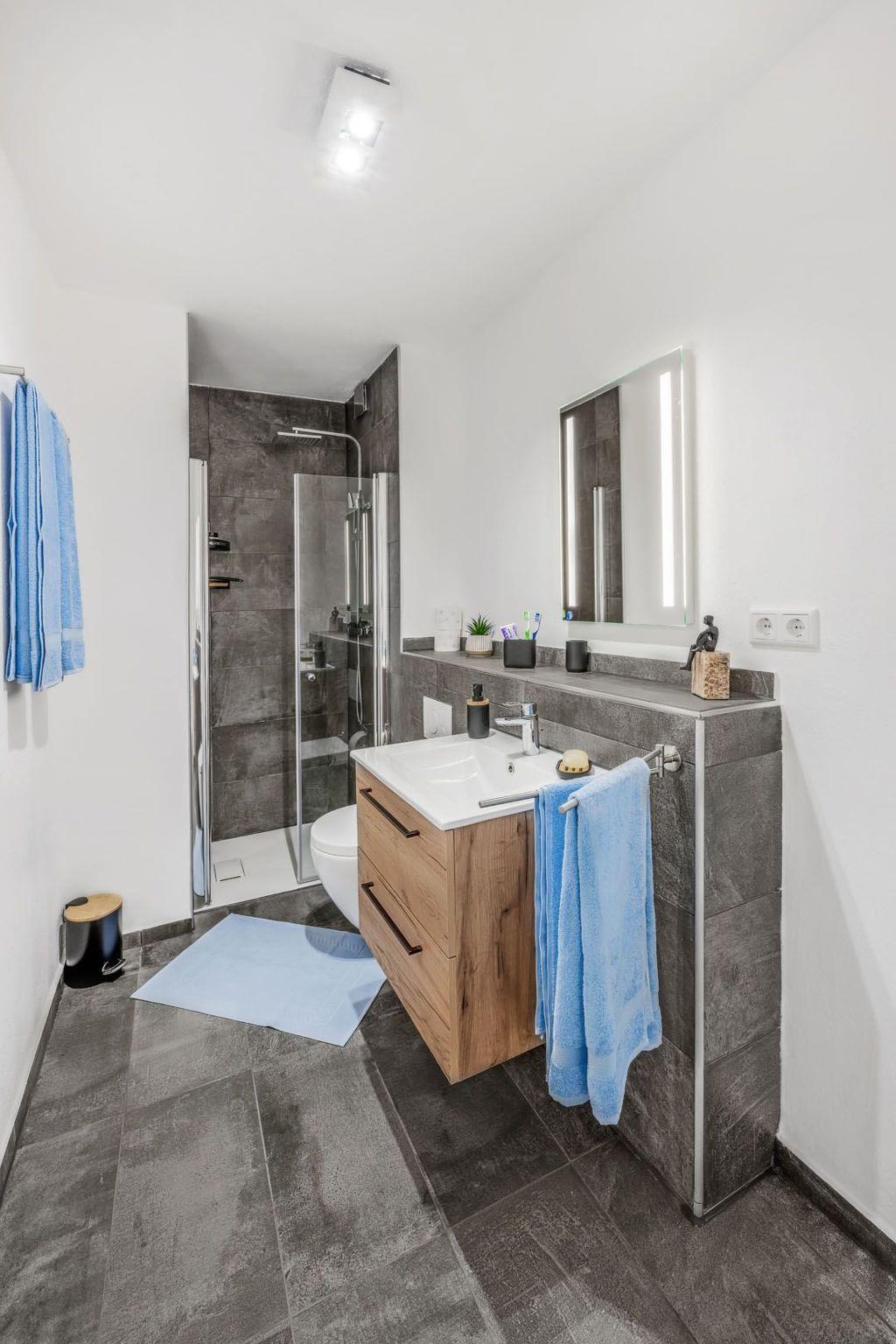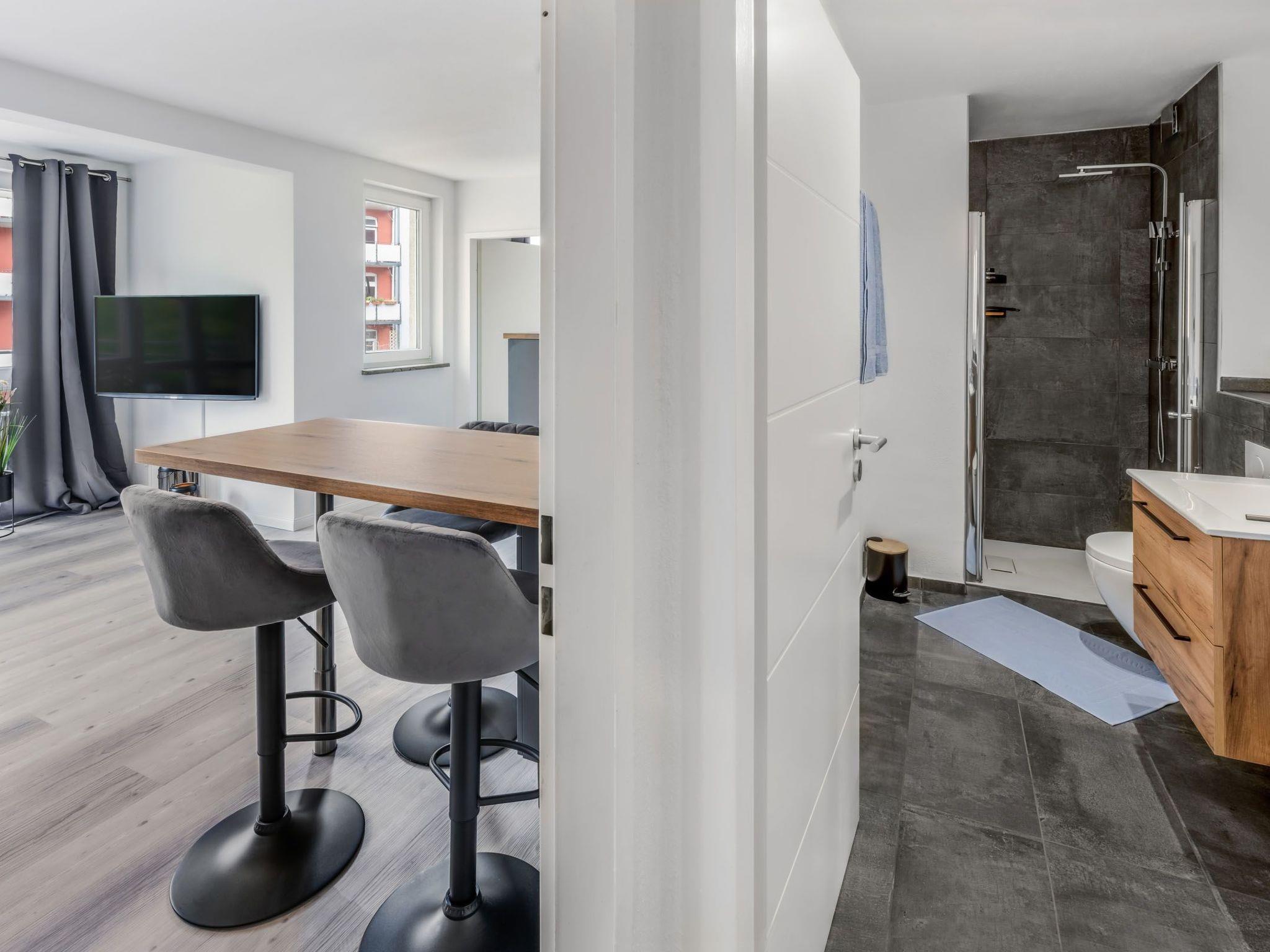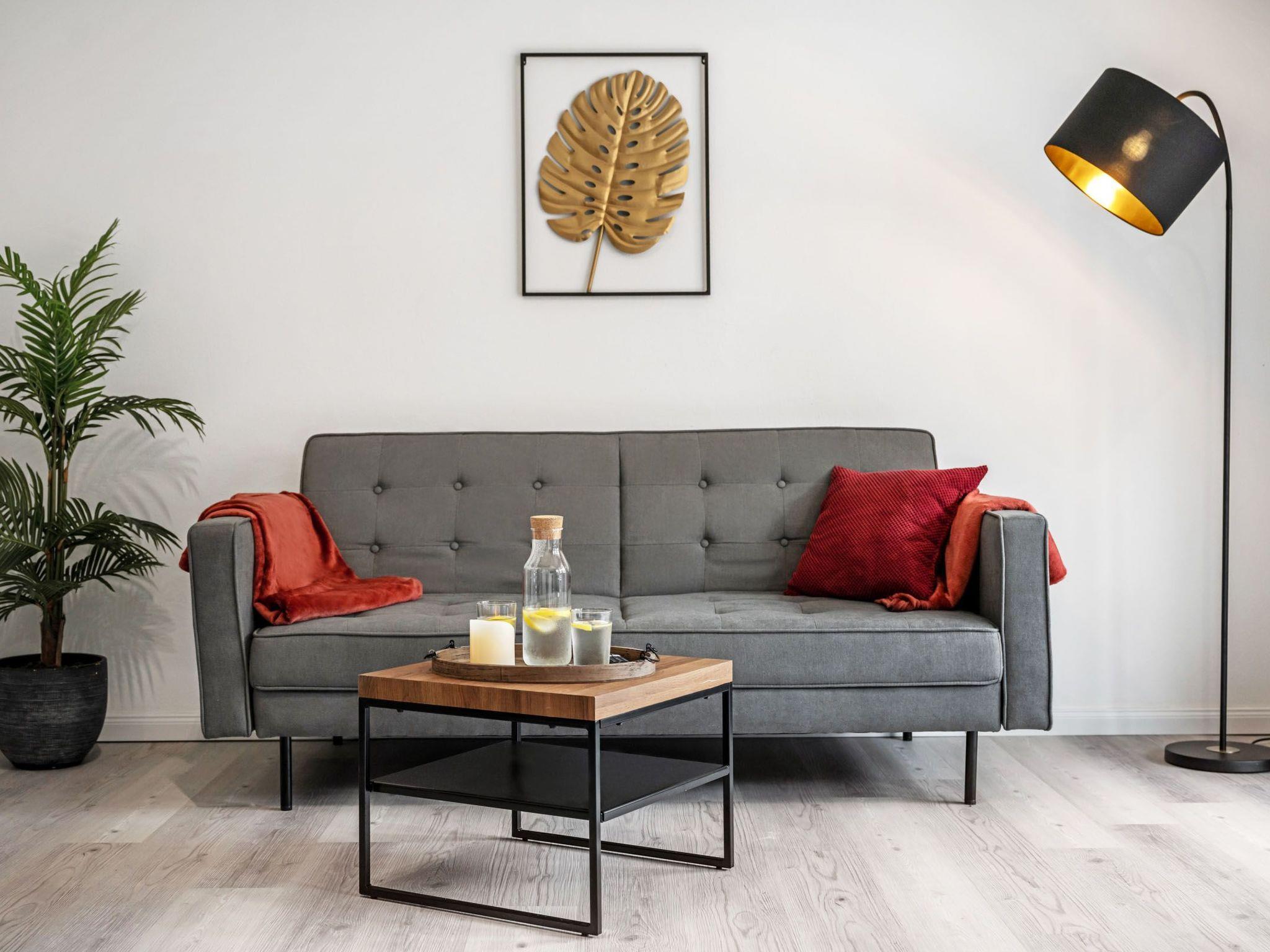 The unique flat on the 4th floor with lift impresses with its coordinated design and gives guests a quiet and pleasant feeling of living. The flat offers enough space for up to two adults and one child. It is therefore ideal for couples and small families. Of course, you can also enjoy the cosy flat on your own. Only high-quality materials were used in the complete refurbishment of the flat. Thanks to the integrated underfloor heating, you no longer have to worry about cold feet even in winter. Great importance was also attached to the furnishings in order to make the flat as cosy as possible. In the bedroom there is a solid wooden bed measuring 1.40 m wide (suitable for two people), which has been fitted with a cosy mattress. There is also a cosy sofa bed in the living room where you can either sleep or simply relax. There is also a large Smart TV in the living room, which promises good entertainment for cosy evenings. The kitchen offers you every comfort, whether for a short stay or a longer holiday. With all the necessary electrical appliances (fridge with freezer compartment, oven and ceramic hob, coffee machine and kettle), you can prepare a delicious meal in the comfort of your "home". If you don't feel like it, you can reach the city centre on foot in under 10 minutes and choose from a wide range of restaurants and snack bars. The large balcony is perfect for romantic evenings for two in glorious weather. Last but not least, a spacious bathroom with a shower and a large mirror rounds off the freshly renovated flat. WLAN is of course available to you. You are therefore moving into a completely new flat, which impresses with its unique design.