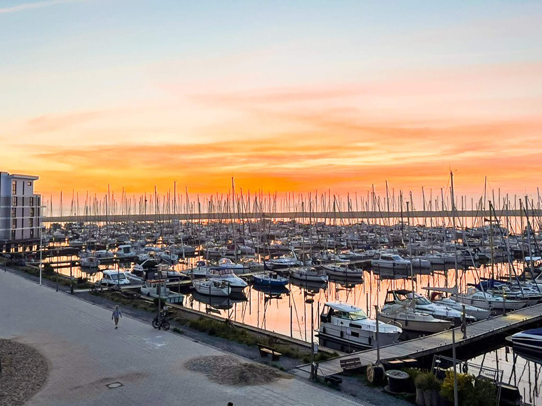 Moderne og komfortabel lejlighed på 2. sal med udsigt over Østersøen og lystbådehavnen. Nybyggeri med færdiggørelse i maj 2022! Nyd den smukke panoramaudsigt over Østersøen fra morgen til aften. Den moderne og komfortabelt indrettede lejlighed består af et åbent køkken-opholdsstue med spiseplads og udgang til den store altan. Derudover er der et badeværelse med regnbruser med dampbadfunktion og gulvvarme. Denne smukke lejlighed har også vaskemaskine og tørretumbler. Et tv med Blu-Ray-afspiller og en soundbar med Bluetooth-forbindelse sørger for underholdning, og en bioethanolpejs giver hyggelig varme. I alt er der tre soveværelser, hver med en hyggelig dobbeltseng med en madras i fuld længde og et fladskærms-tv. Hunde er velkomne.