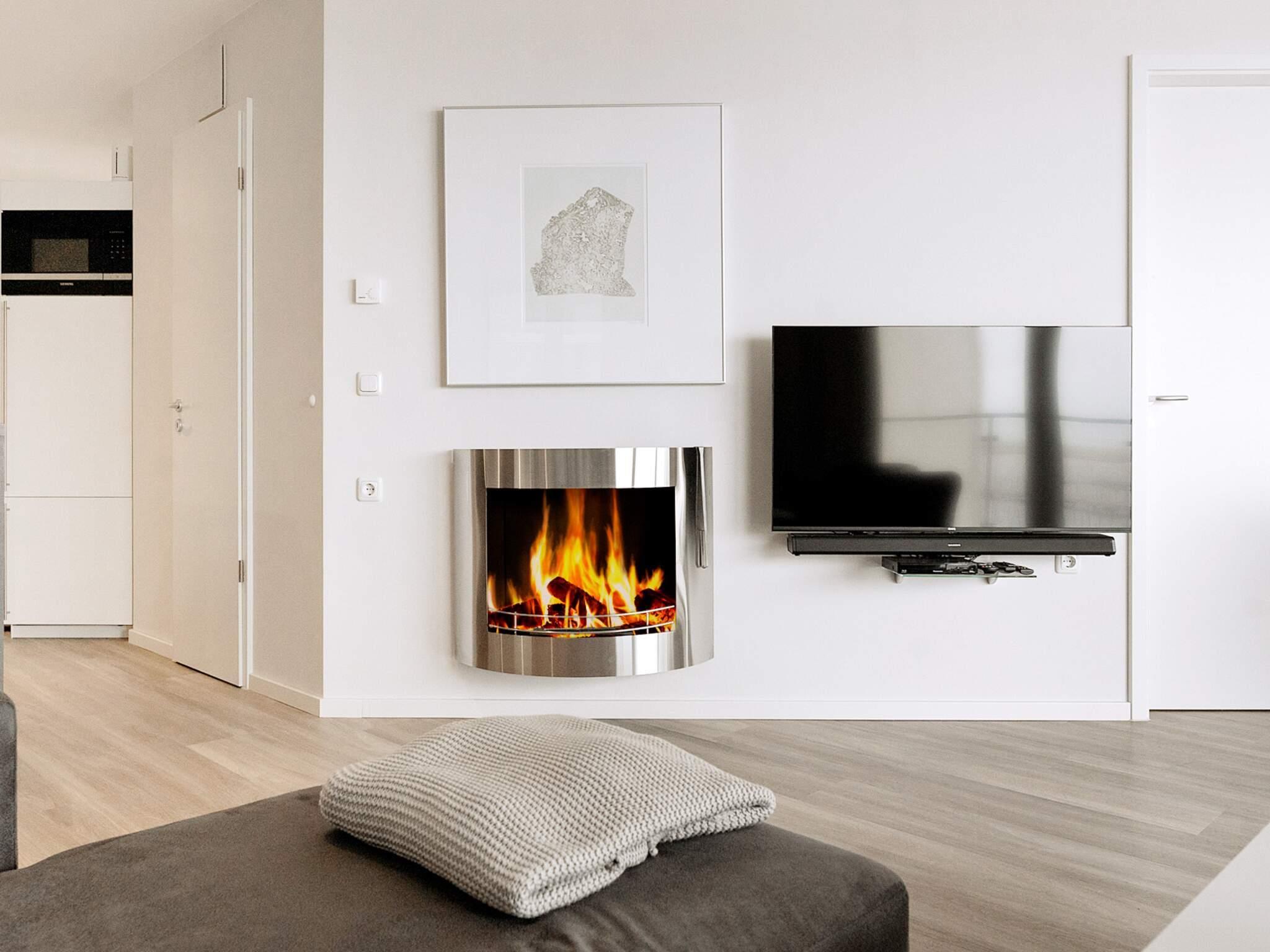 1 Opholdsstue: Bioethanolpejs, radio, stereoanlæg med cd, Blu-ray, tv, kabel-tv
