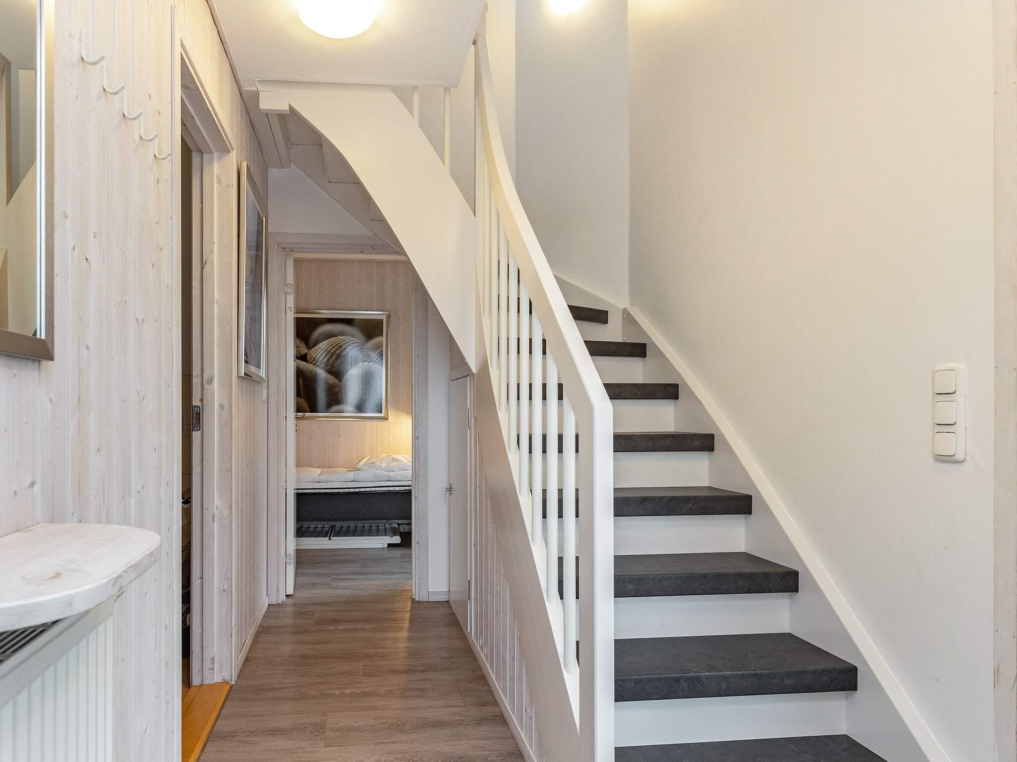 Det kombinerede køkken/stueområde ligger på 1. sal, hvorfra man kan nyde en storslået udsigt over havet og det omkringliggende område. Her finder man også en loggia, hvor man kan nyde lune sommeraftener og panoramaudsigten over diget og stranden bagved. Brug kikkerten til at følge skibstrafikken og observere den smukke natur.