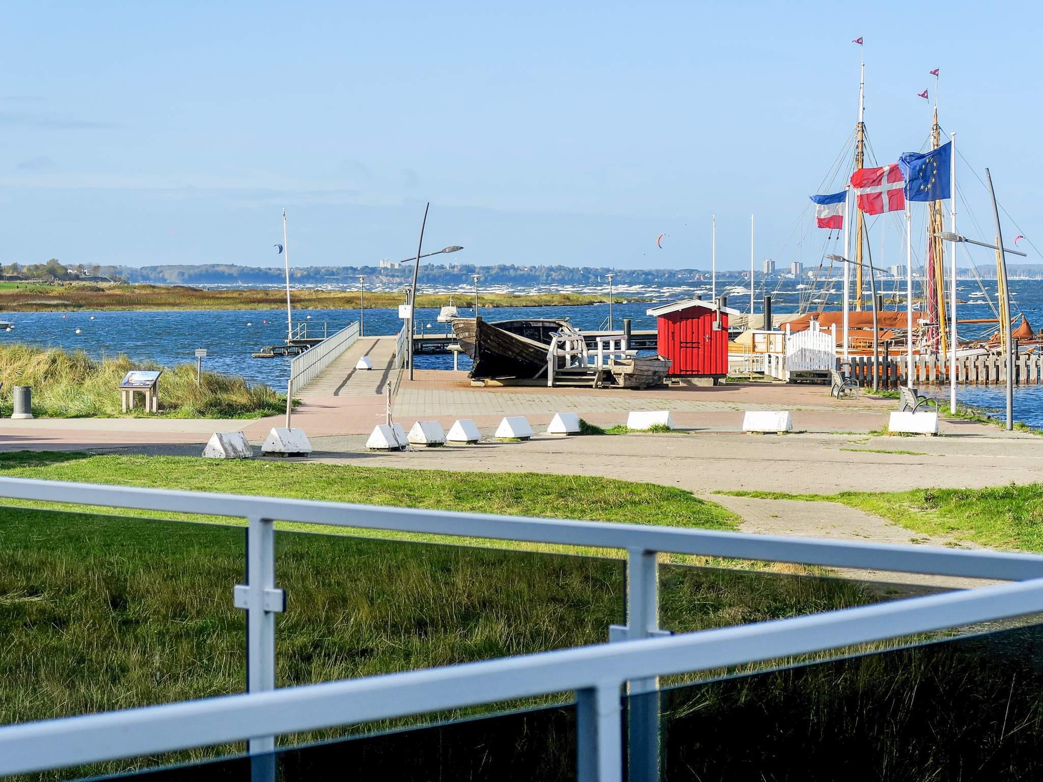 Nærområdet indbyder til slentreture i havneområdet og strandture til den dejlige sandstrand, som ligger i umiddelbar forbindelse med havneområdet. På den nærliggende landtange, Bottsand, kan I vælge mellem tekstilstrand og nudiststrand. Med lejlighedens kikkert kan I følge livet på havet – blandt andet den livlige skibstrafik til og fra Kielerkanalen og de smukke sejlbåde, som særligt i sommermånederne præger billedet. Og bor I her i Kieler Woche, som normalt ligger i den sidste hele uge af juni, kan I fra jeres stue og terrasse betragte verdens største sejlsportsarrangement.
