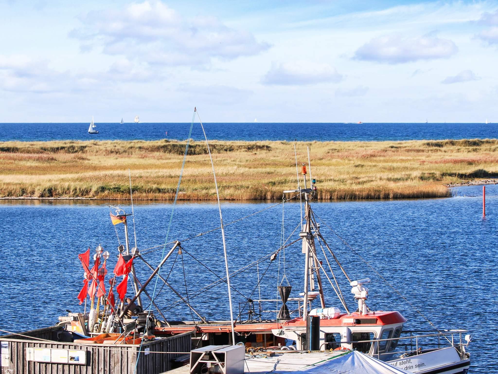 Moderne og komfortabelt møbleret ferielejlighed på 2. sal med udsigt til Østersøen og den hyggelige lystbådehavn.