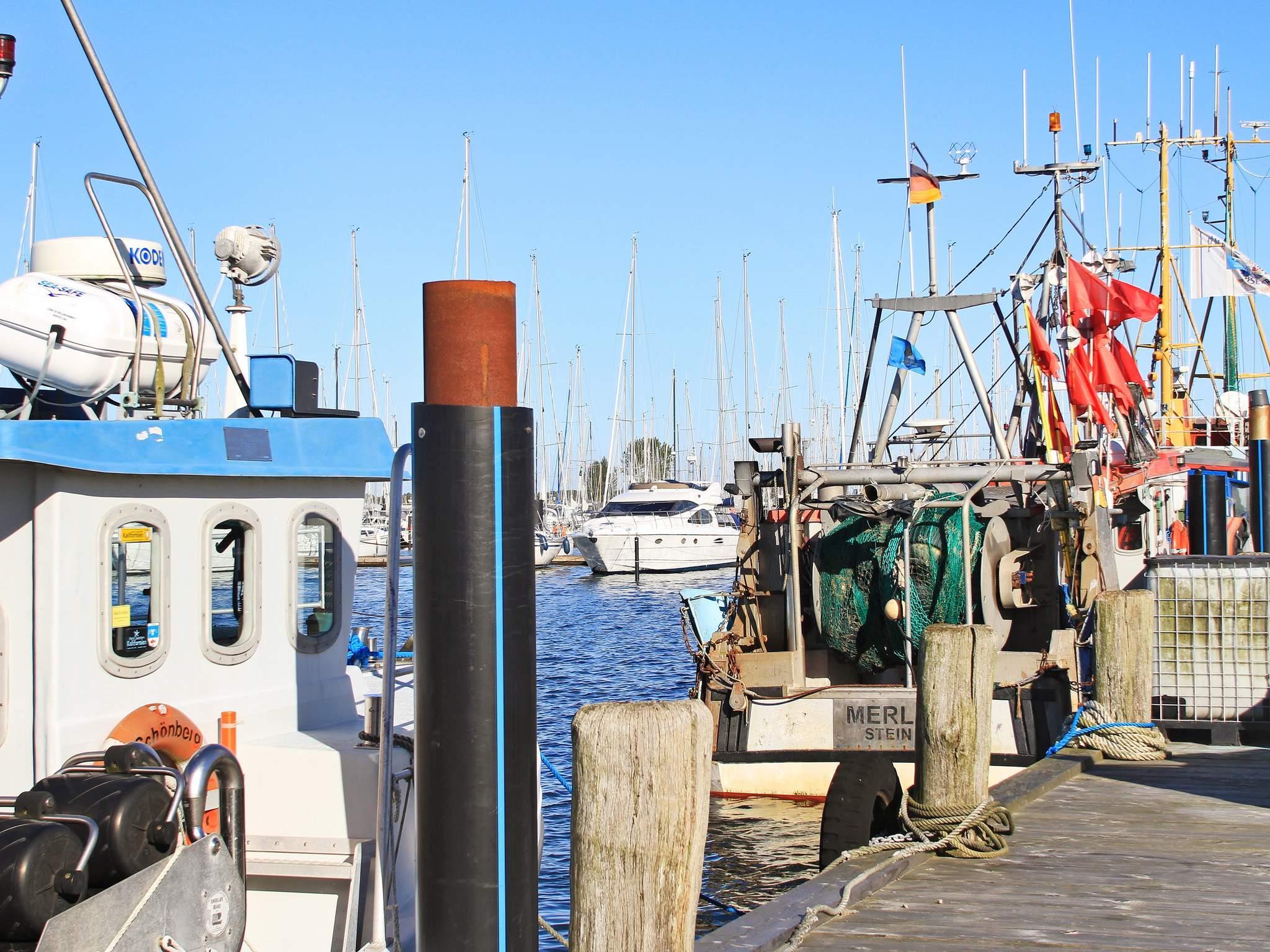 Udenfor ligger havnen og sandstranden kun få skridt væk, og det nærliggende Bottsand-forland tilbyder både familievenlige og naturistområder. Om sommeren maler sejlbåde og skibe, der sejler til eller fra Kiel-kanalen, et livligt maritimt billede. Under den berømte Kiel-uge har du forreste række til verdens største sejladsbegivenhed – kikkert medfølger.