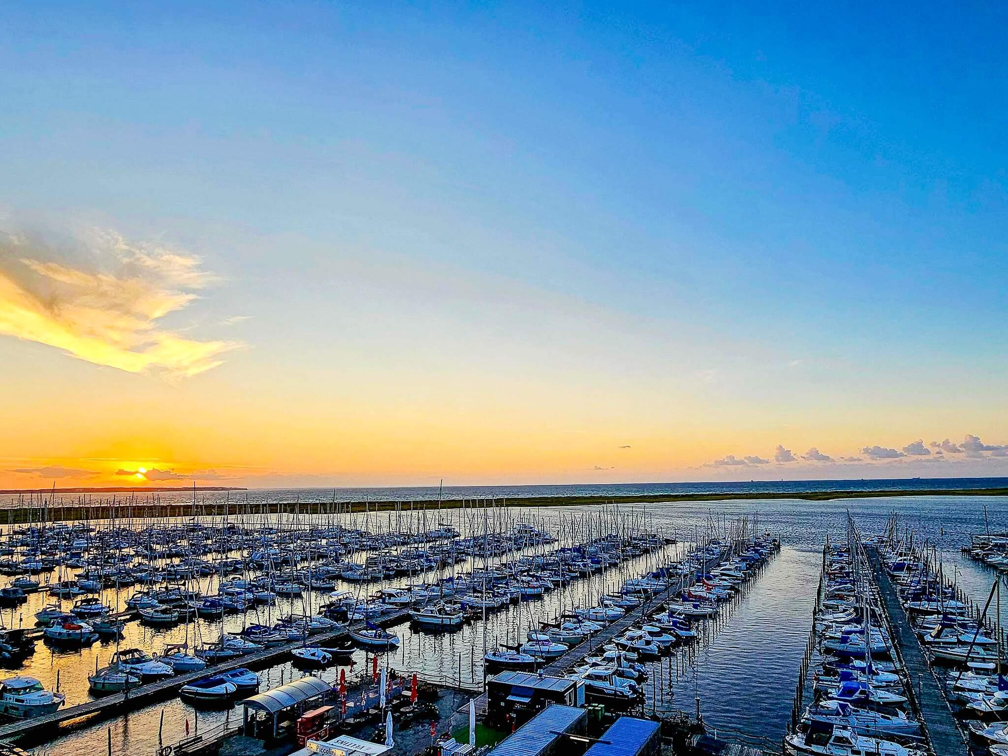 Penthouse-lejlighed ved havnefronten i Marina Wendtorf med tagterrasse ud mod vandet. Fra stuen og tagterrassen er der en fantastisk panoramaudsigt over havet og den lille Østersøhavn.
