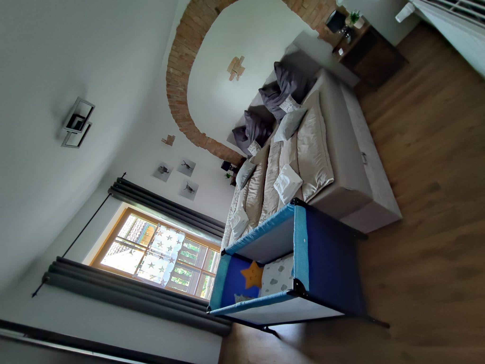 • Boxspringbett (180x200 cm), Kinderreisebett verfügbar.