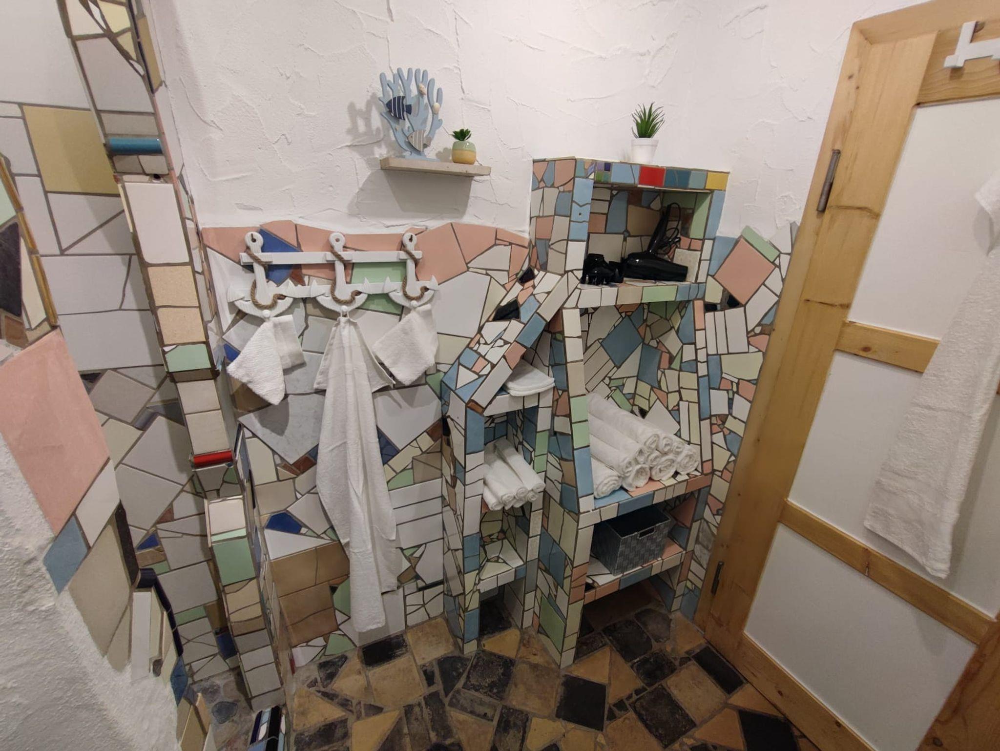 • Dusche, WC mit Föhn, Dusch- und Handtücher (Austausch bei Bedarf).