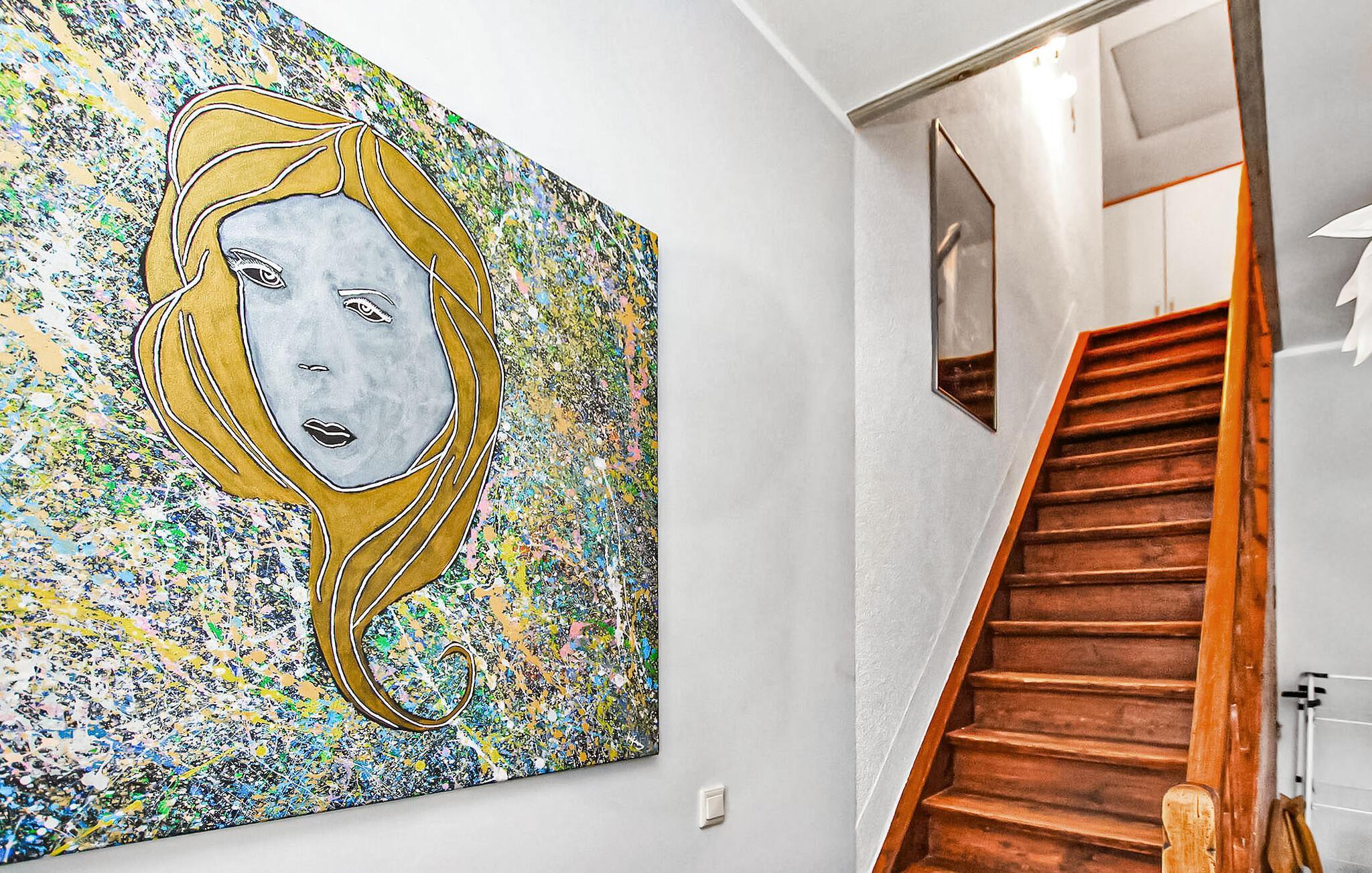 Den cirka 70 kvadratmeter store, centralopvarmede ikke-ryger lejlighed med separat indgang kan nås via en forholdsvis stejl trappe og er meget individuelt indrettet. Det har en stue (sofa, fladskærms-tv, spisebord), to soveværelser (hver med en dobbeltseng, 1 x ekstra fladskærms-tv), et stort badeværelse (bruser, toilet), et gæstetoilet og et rummeligt gang med mini- Køkken i skabet (elkogeplader, køleskab, miniovn, diverse små køkkenmaskiner). Derudover er der parkeringspladser, cykelopbevaringsfaciliteter, en robåd til rådighed efter anmodning mod et gebyr, gratis Wi-Fi, en grill (på forespørgsel) og siddepladser foran huset. Den samlede pris inkluderer slutrengøring samt omkostninger til energi og vand. Medbring venligst dit eget sengelinned og håndklæder, eller du kan leje dem. Betales lokalt: vaskeripakke (hvis det ønskes), robåd (20 EUR/dag).