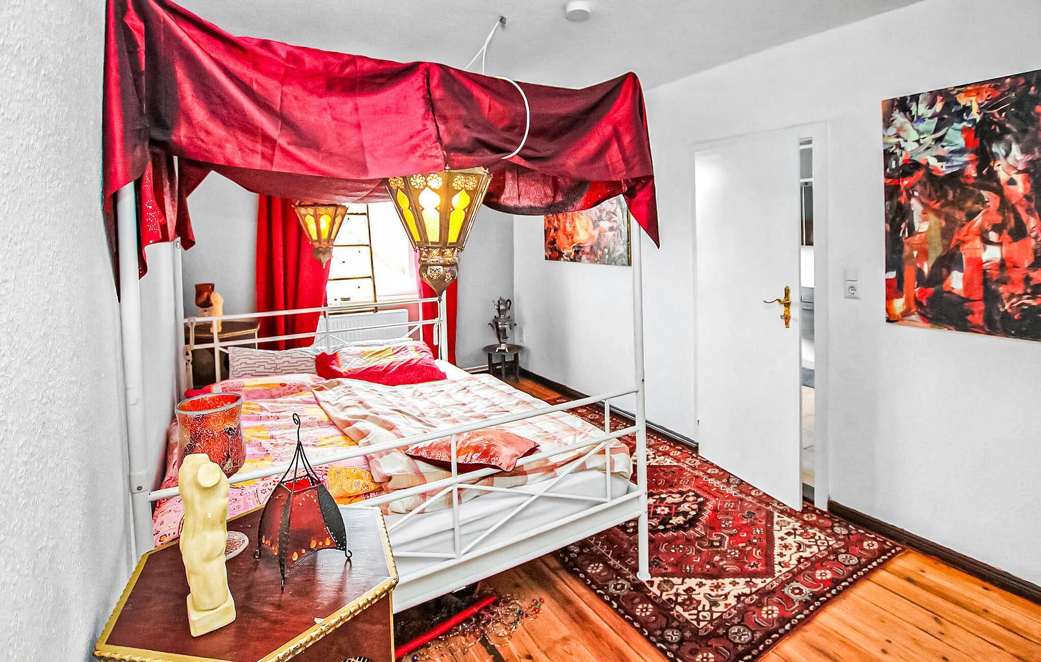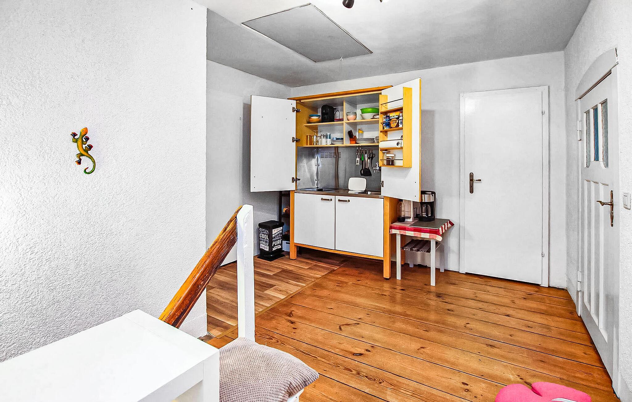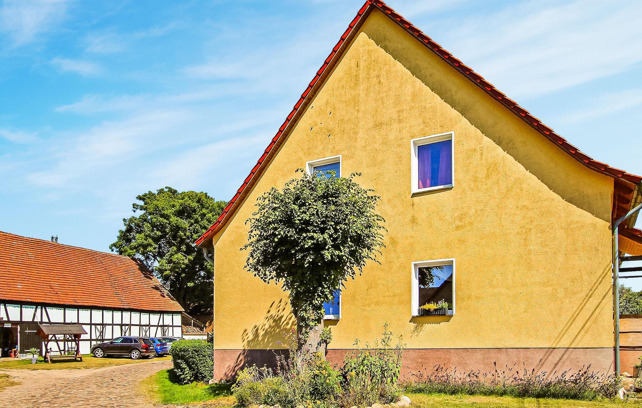 På en rolig og landlig beliggenhed ligger den hyggelige ferielejlighed med to soveværelser på øverste etage i en beboelsesejendom. Den store Kiever-sø ligger knap 1,30 km væk, og et smukt naturligt badeområde ved Glambeck-søen (med fiskemuligheder). ) er omkring 2 km væk, i det omkringliggende område. Der er skovstier til cykel- eller vandreture og en biotop på Elde til naturobservation. Dorfkrug er kun få skridt væk, shoppingmuligheder kan findes i Röbel eller Wittstock (ca. 15 km).