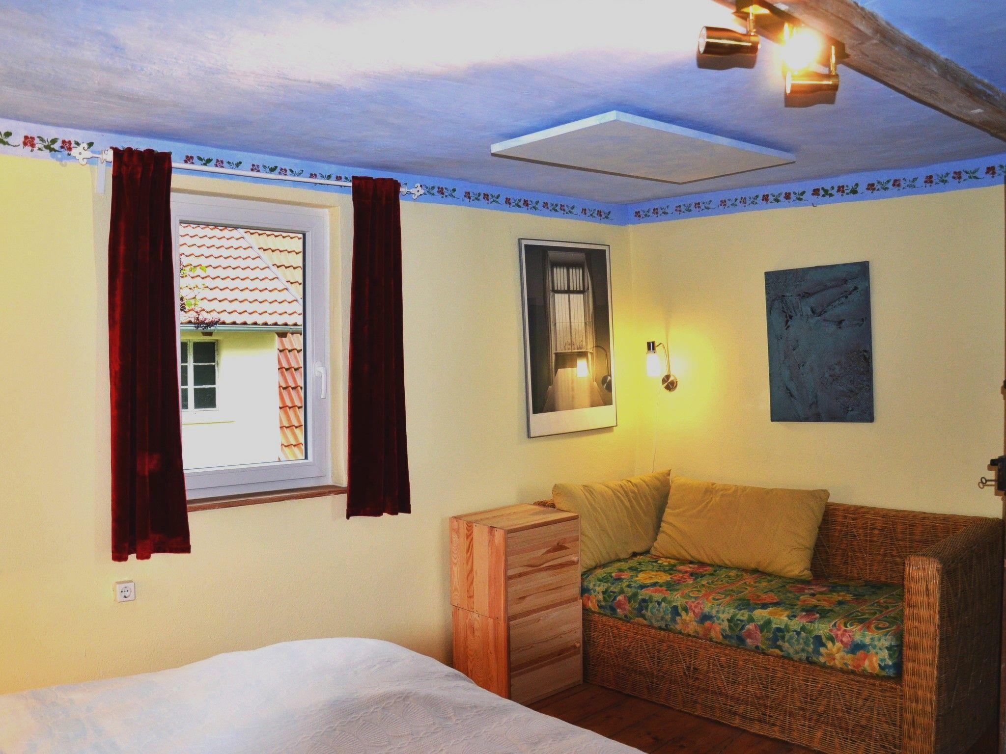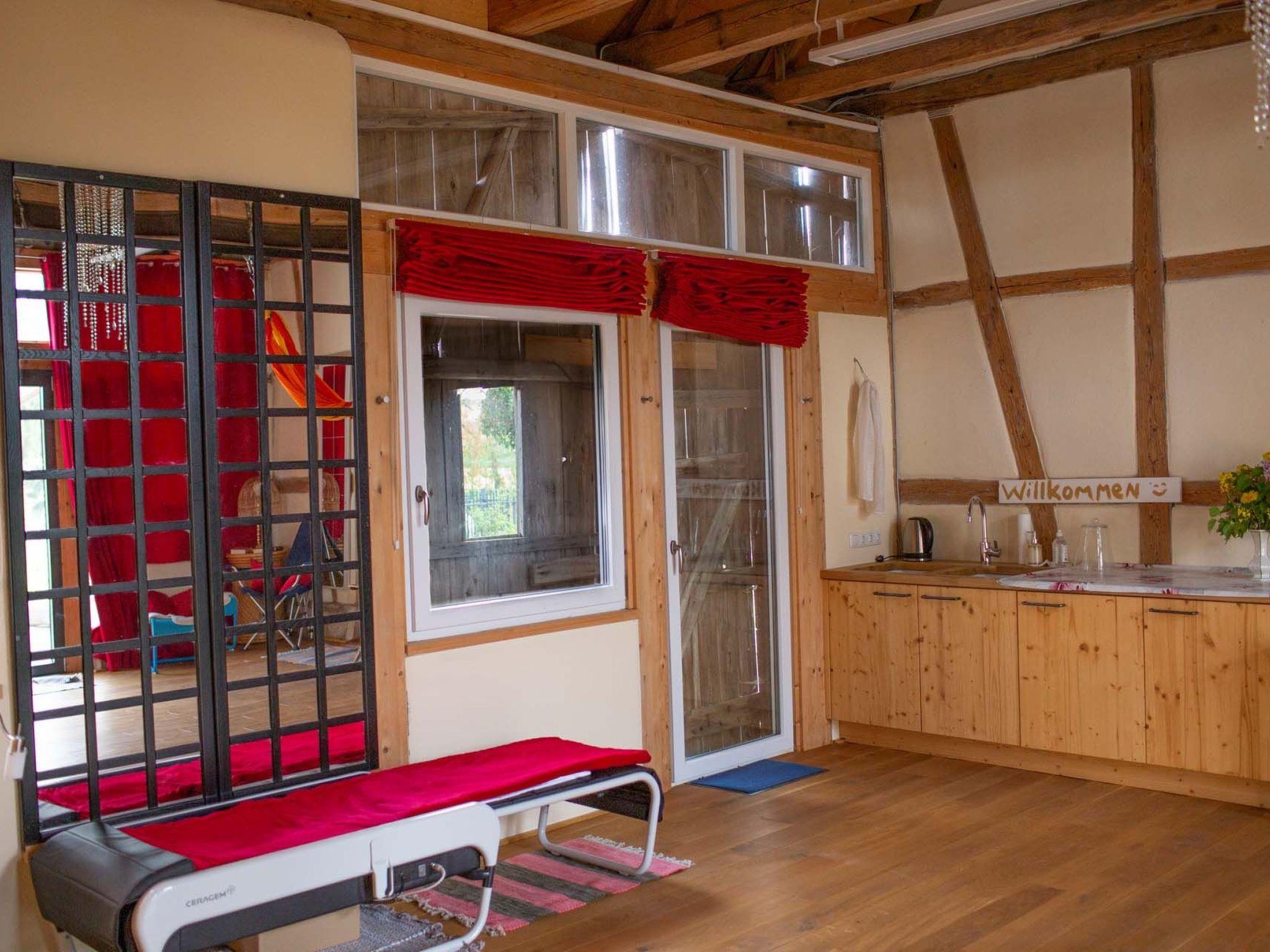 Quiet, idyllic, high fairytale-like equipment with highest comfort. 4 DTV stars - direct access to hiking trails and good connection via largely deserted roads to renowned cycle paths, a lovely, slightly hilly landscape in the Haßberge Nature Park, good shopping facilities for conventional and organic food with short distances, including a village shop (1 km on foot, bike or car) with high-quality organic products from the counter-star water fun, garden, meadows and terraces. Additional hire of the yoga room possible.