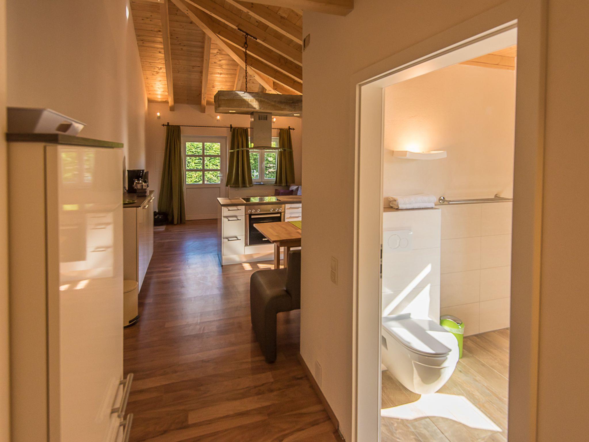 Unsere Wohnungen - in warmen Holztönen und mit viel Wohlfühl- Atmosphäre eingerichtet – laden Sie ein zur Entspannung. Umgeben von einer traumhaften mediterranen Garten-Landschaft mit Naturschwimmteich, Bachlauf, Sauna und duftenden Kräutern und Pflanzen, dürfen Sie mal so richtig die Seele baumeln lassen.