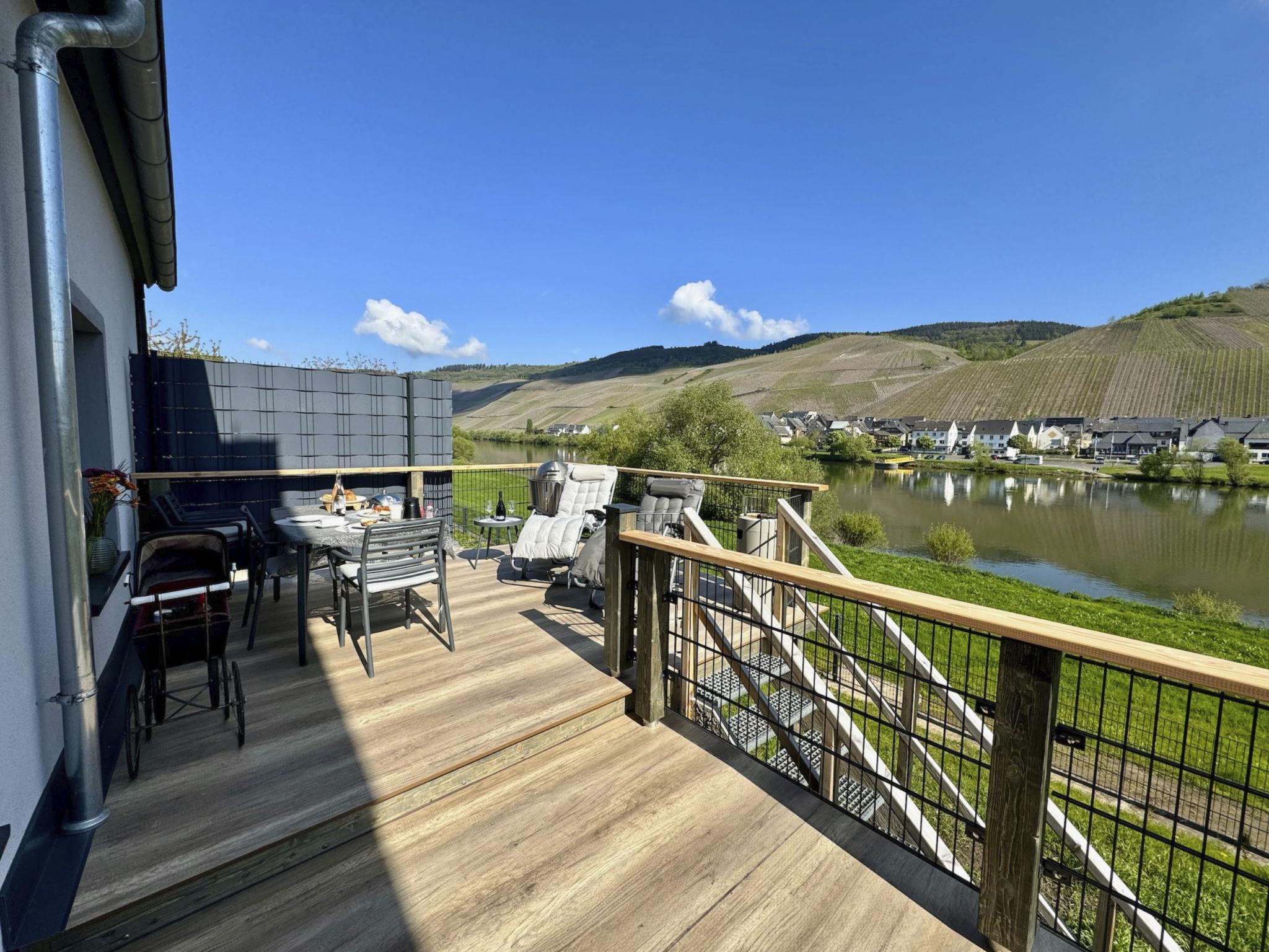 First of all, the huge wooden balcony is for me the most beautiful box seat for Moselle and vineyards on the Middle Moselle - you sit there with the wine, look at the panorama and are happy, whether in the morning, at noon or in the evening.