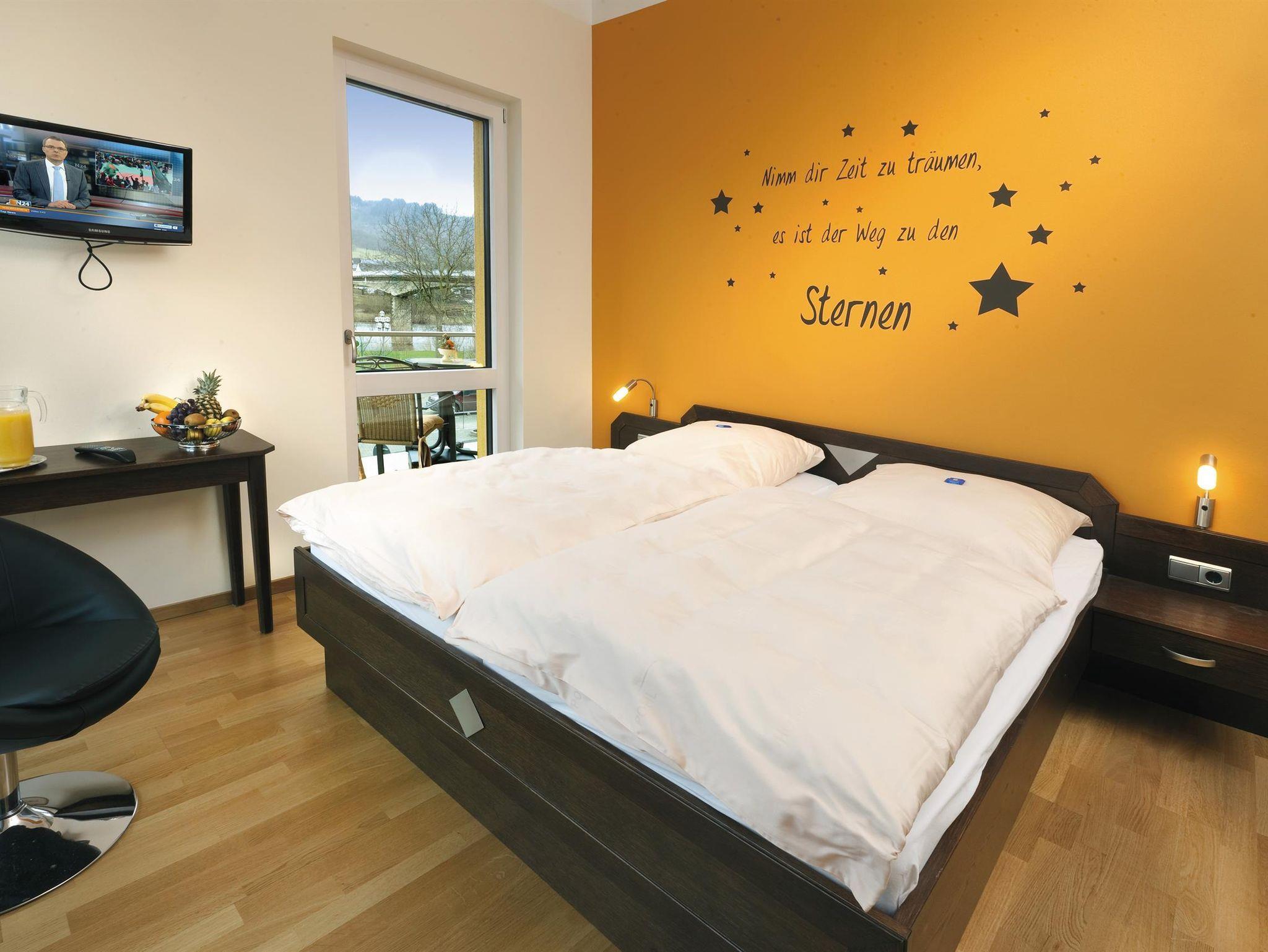 Moderne Doppelzimmer mit Balkon und Moselblick, Tresor, TV, Bad mit Dusche, Kosmetikspiegel und Fön