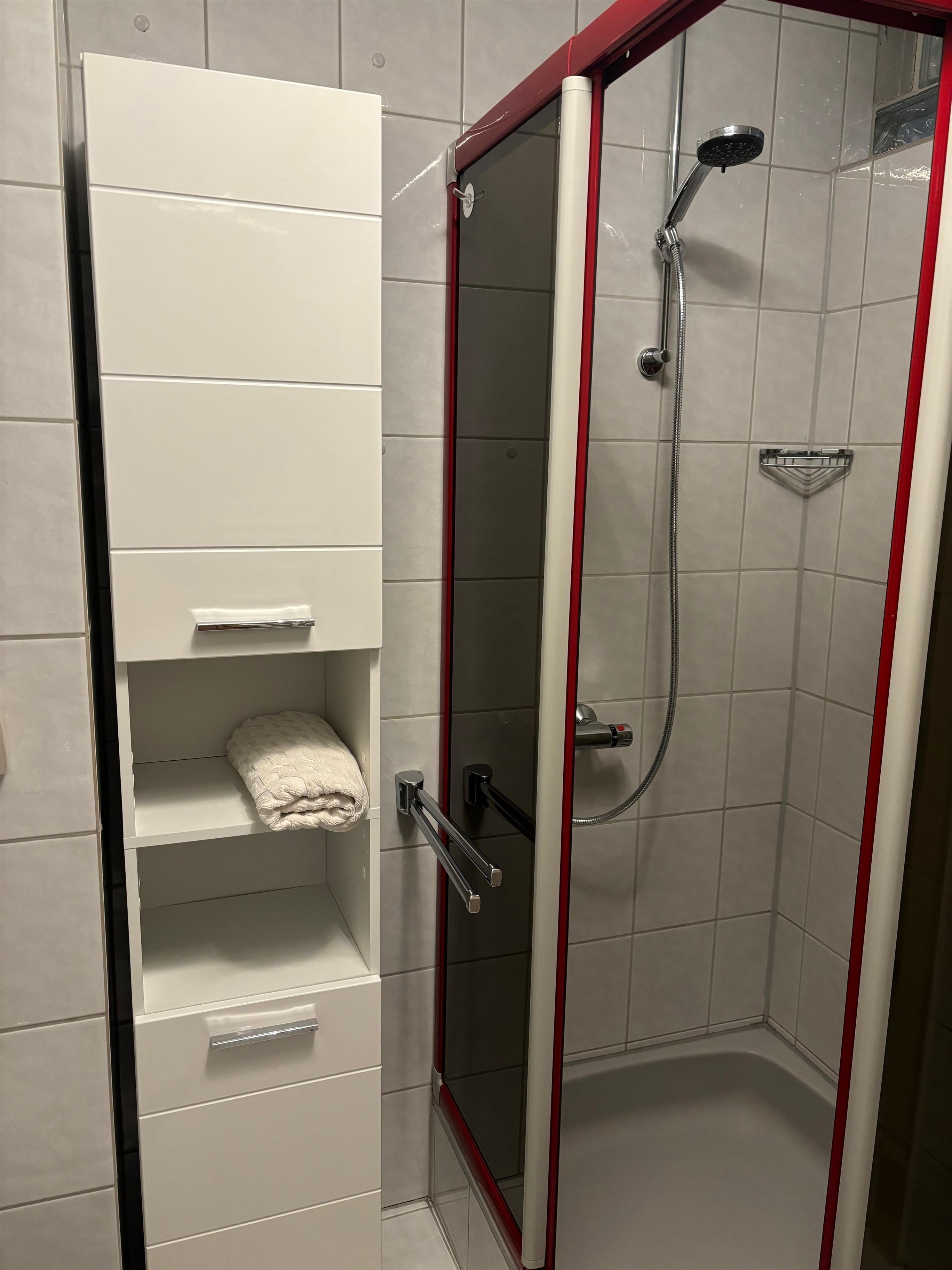 Sie befindet sich in unserem Haus im 1. Stock und hat einen eigenen