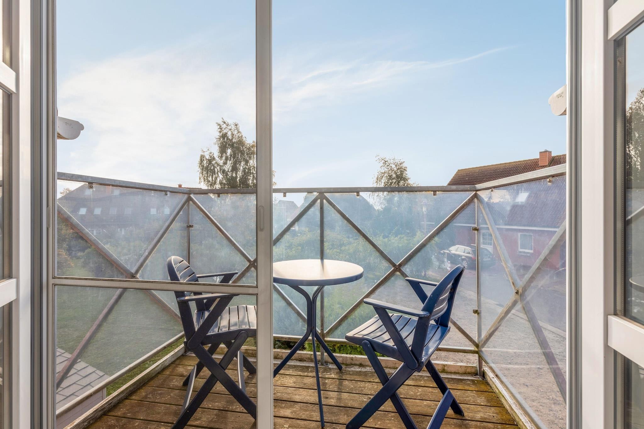 På 1. etage: (åbent køkken(kogeplade(Komfur med to kogeplader, glaskeramisk), elkedel, brødrister, komfur(Komfur med to kogeplader), kaffemaskine, combi-mikroovn, opvaskemaskine , køle-fryseskab), stue / spisestue(dobbeltsovesofa, Fjernsyn(fladskærm), spisebord(4 personer), sofahjørne, stereoanlæg), soveværelse(king size-seng(180 x 200 cm)), badeværelse(gulvvarme)(bruser, håndvask, toilet)) tremmeseng, balkon, varme, parkering, Parasol, barneseng, barnestol