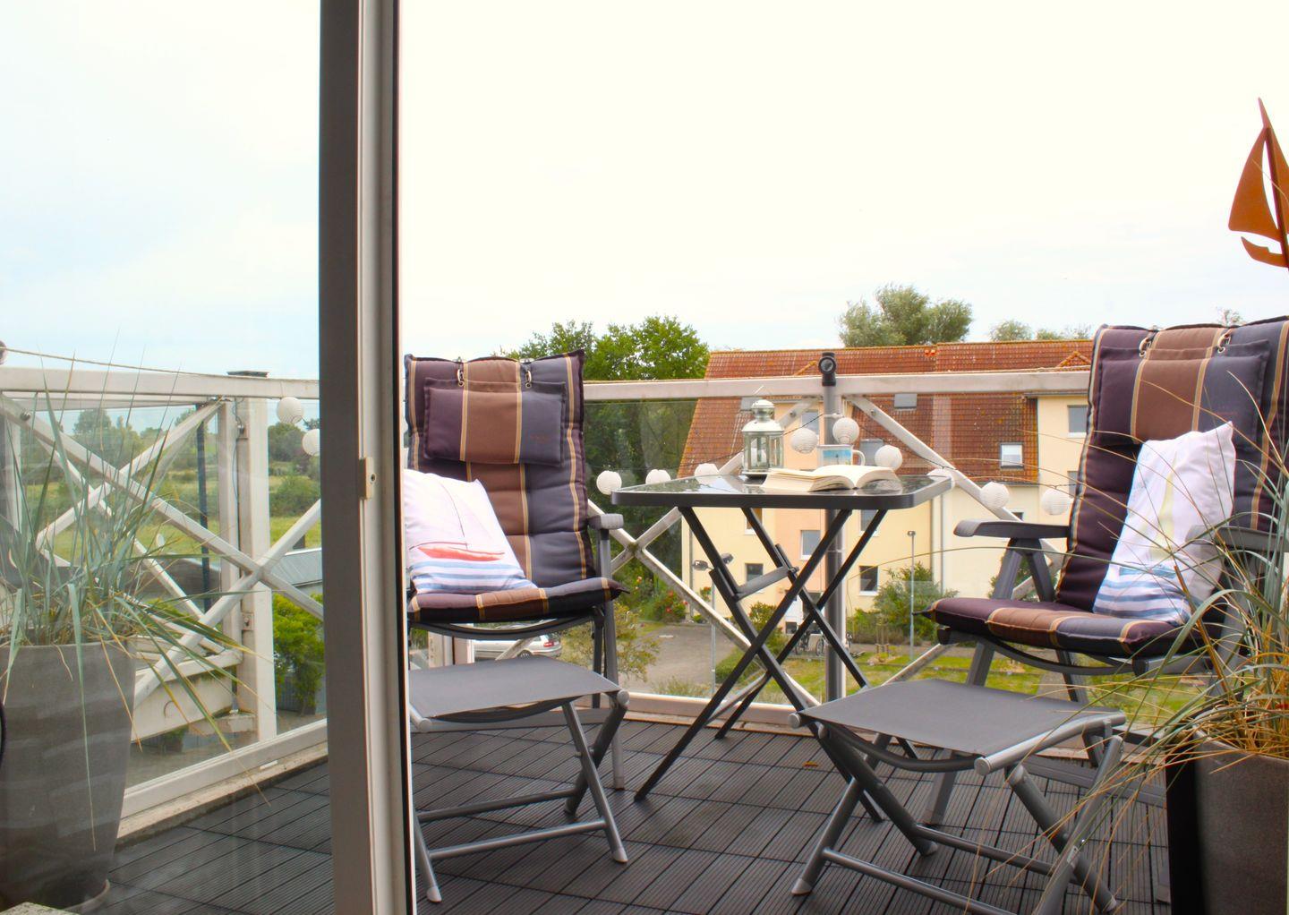 Genießen Sie die frische Luft auf dem möblierten Balkon mit einem eingeschränkten Blick auf die idyllische Kirchsee und den Hafen.