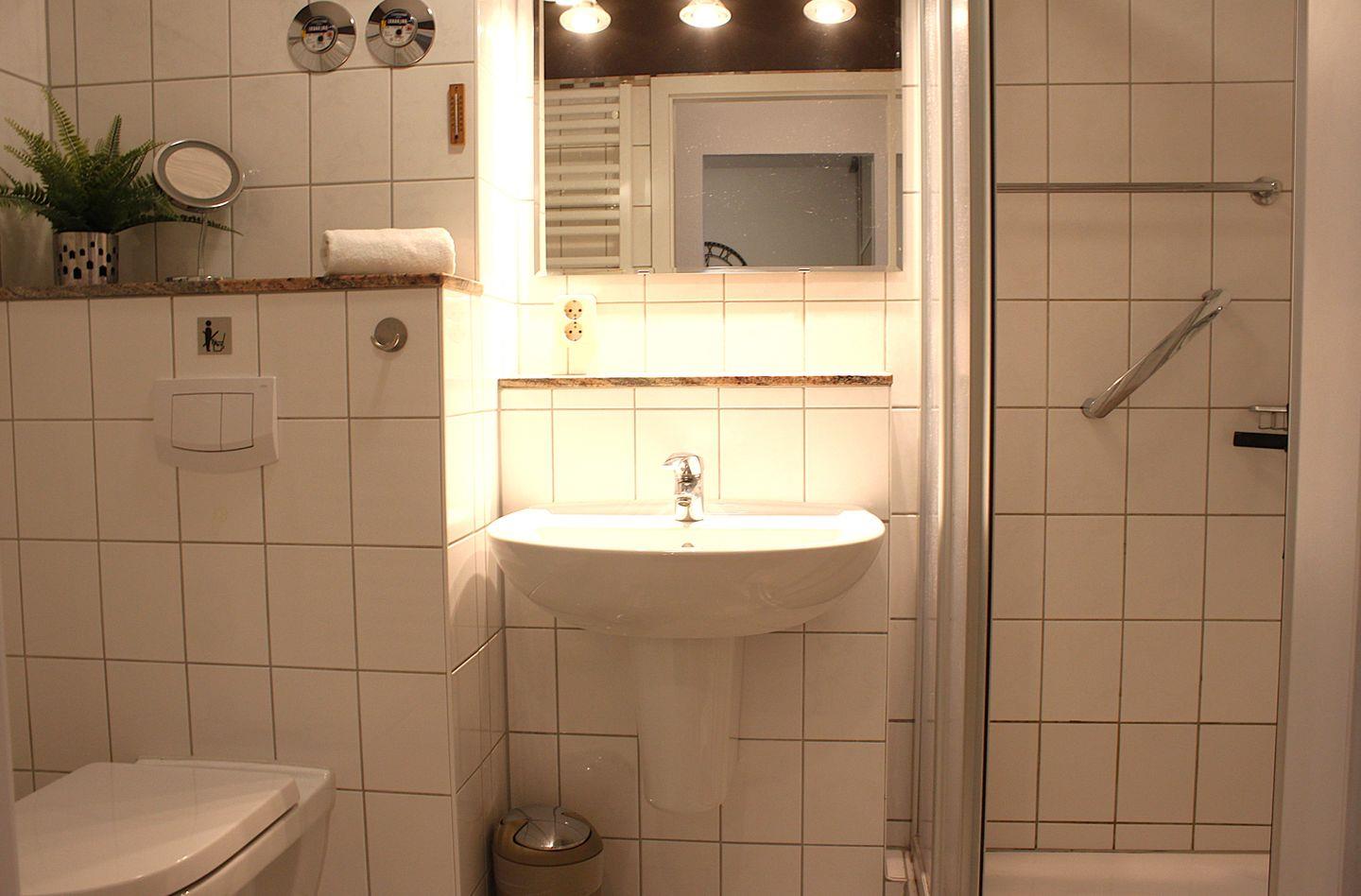 Im Badezimmer steht Ihnen eine Dusche, ein WC, ein Waschtisch und ein Handtuchheizkörper zur Verfügung.