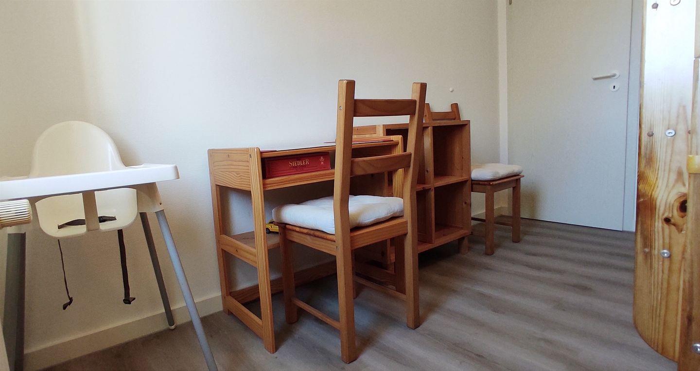Für einen erholsamen Schlaf stehen Ihnen zwei separate Schlafzimmer zur Verfügung. Das Hauptschlafzimmer ist mit einem Doppelbett und einem Kleiderschrank ausgestattet. Das zweite Schlafzimmer verfügt über ein Etagenbett für 2 Personen, einen Kleiderschrank und einen Schreibtisch. Die Schlafcouch im Wohnzimmer bietet zwei weitere Schlafplätze.