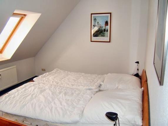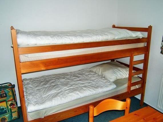 Die Wohnung hält außerdem zwei separate Schlafzimmer für Sie bereit, die sowohl in der unteren Etage, als auch im Obergeschoss der Wohnung liegen. Möbliert mit einem Doppelbett oder einem Etagenbett und jeweils genügend Stauraum, verbringen Sie hier ruhige Nächte. Ein weitere Schlafplatz für eine Person befindet sich in der offenen Galerie im Obergeschoss.
