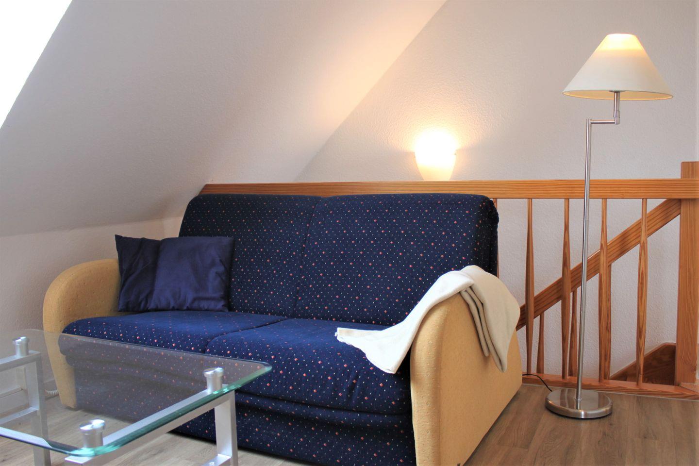 Das Appartement bietet Ihnen außerdem ein Schlafzimmer mit zwei Einzelbetten und ein weiteres Schlafzimmer mit Doppelbett und eine offene Galerie mit einer Doppelbettschlafcouch im Obergeschoss der Wohnung. Eine kleine Bibliothek und Gesellschaftsspiele sind hier ebenfalls zu Ihrer Nutzung untergebracht.