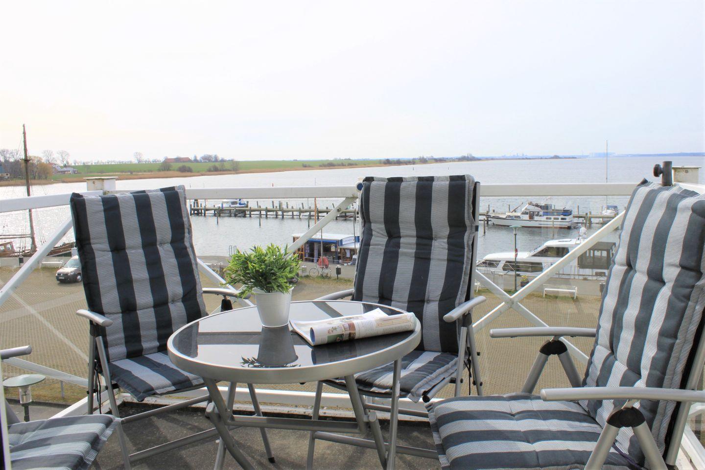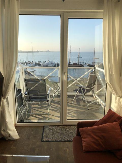 Im hellen und offen gestalteten Wohn- und Esszimmer stehen Ihnen eine gemütliche Couch, ein TV-Gerät und der Esstisch zur Verfügung. Außerdem haben Sie hier Zugang zum Balkon, der Ihnen einen unverbauten Blick auf die Kirchsee und dem bunten Treiben auf dem Wasser z.B. dem Trainieren der Drachenbootfahrer, den Fischern, dem An- und Ablegen der Segel/Motoryachten und der Fähre von und nach Wismar zu schauen.