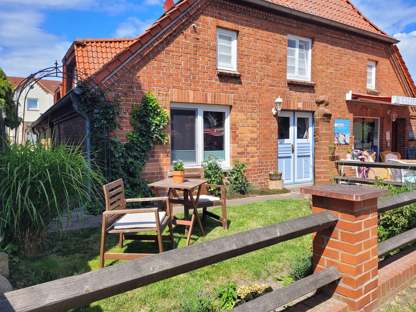 Der kleine Vorgarten ist mit einem Tisch und Stühlen ausgestattet. Von dort können Sie das bunte Treiben genießen. Im angrenzenden Galeriecafé können Sie sich bei einem leckeren Frühstück verwöhnen lassen. Ihren Pkw parken Sie auf einem der öffentlichen Parkplätze in unmittelbarer Nähe. Außerdem befinden sich öffentliche Ladesäulen (gebührenpflichtig) für E-Autos auf dem Parkplatz des Hafens.