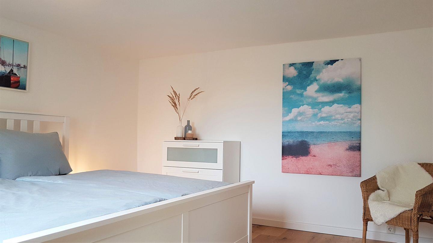 Im hellen, separaten Schlafzimmer (Fenster mit 3-fach Verglasung) verfügen Sie über ein komfortables Doppelbett (180 x 200cm mit durchgängiger Matratze) und genügend Stauraum für Ihre Garderobe.